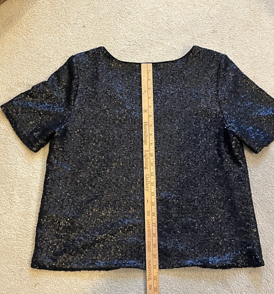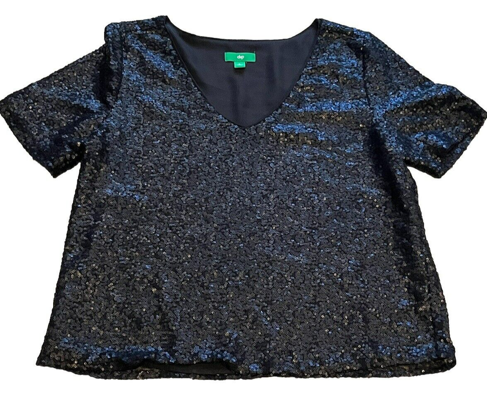 Dip Sz L Black Sequins V-neck lined Top Blouse Women's...