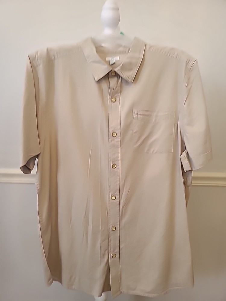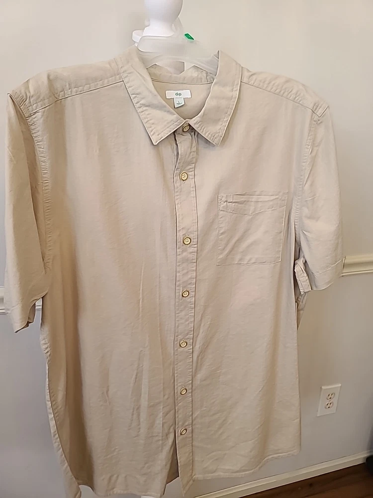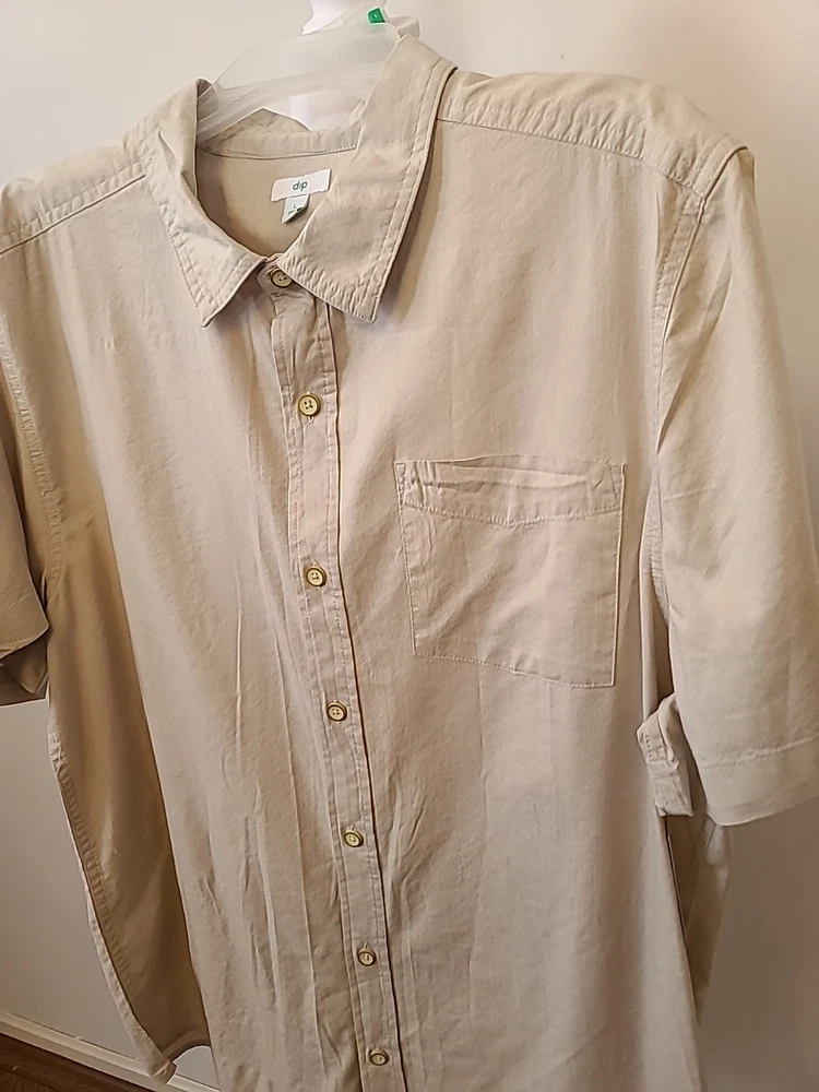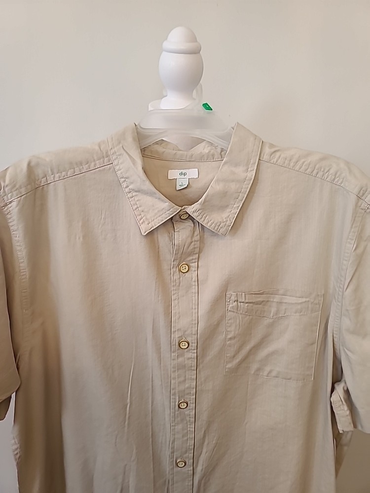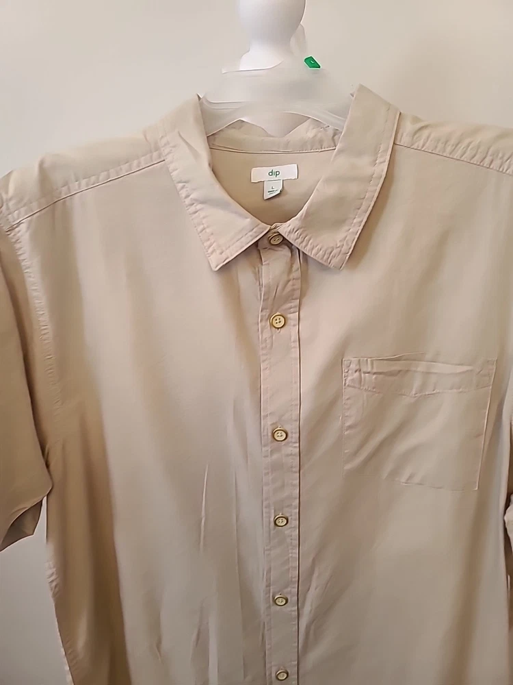 Elevate your casual style with this Dip Tan Button Down Short Sleeve Men Shirt in size Large. Made by Browns, this shirt features a button-down collar and short sleeves, perfect for a relaxed and comfortable look. The brown color adds a touch of sophistication to any outfit, making it suitable for various occasions. Whether you're going out for a casual lunch or running errands, this shirt is a great addition to your wardrobe. Its regular size type ensures a perfect fit for men of all sizes. The casual button-down shirt is perfect for men who want to look stylish and put-together without sacrificing comfort.