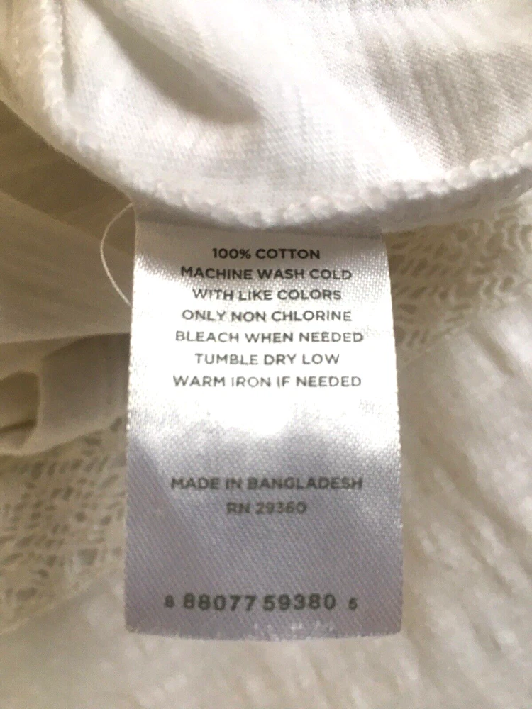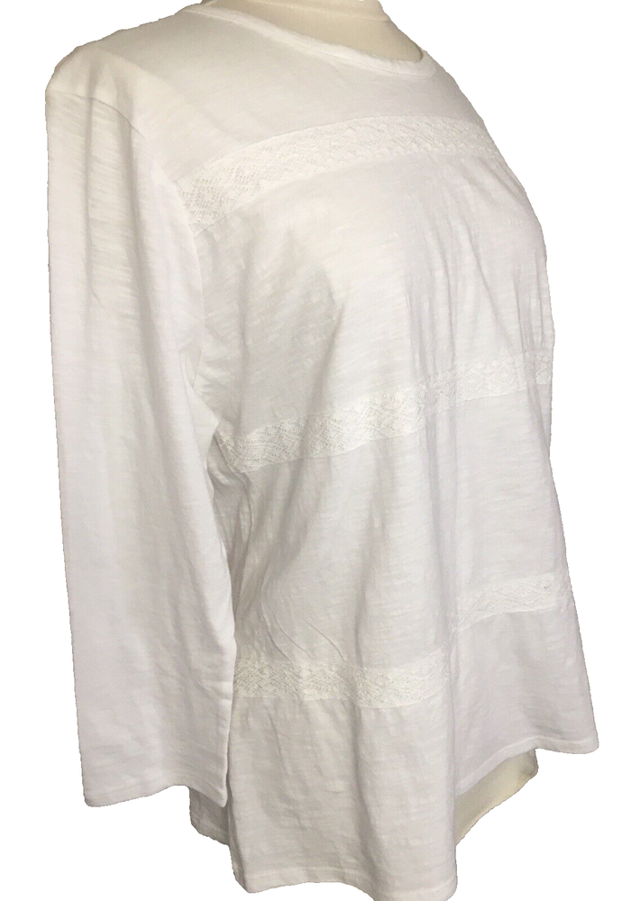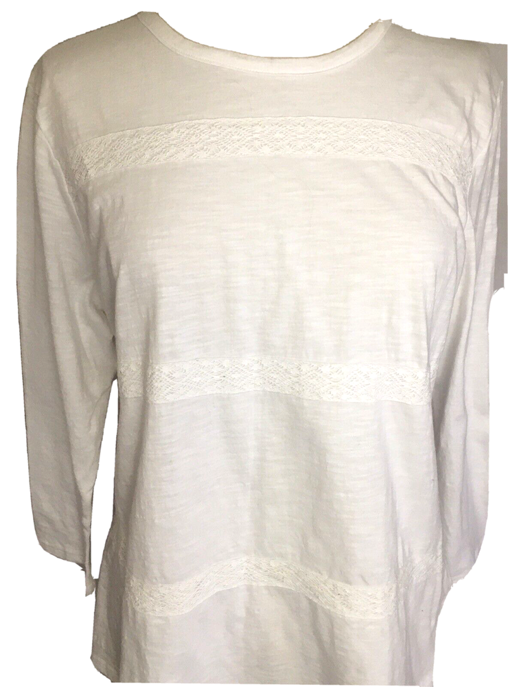 dip brand women's white 100% cotton long sleeve cotton knit top. White lace accents on the front. Nice condition, little wear, see photos. Please double check the measurements for proper fit, as brands can have a different fit. Also, please do not hesitate to contact me with any questions. Measurements: Pit to pit: 21" Sleeve length: 20" shoulder seam to end of sleeve Shoulder to shoulder seam: 17" Length: 26" from back collar to bottom I do try to describe items as best as I can to make my customers happy and earn 5 star positive feedback as I love to leave positive feedback to my buyers! If there is a problem with the item, please contact me asap so I can rectify the problem. In the event you still are not satisfied with your purchase, I will refund your money within 30 days of receipt. Thanks for looking! 3756