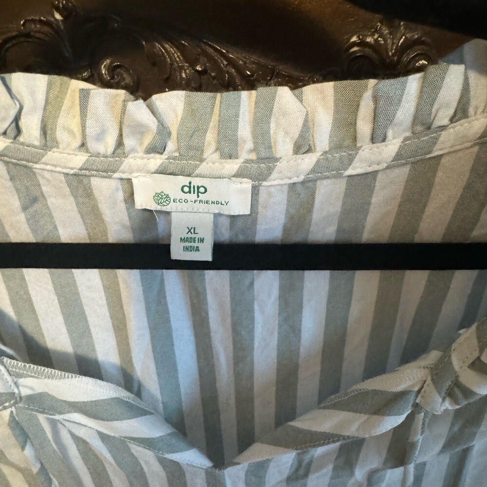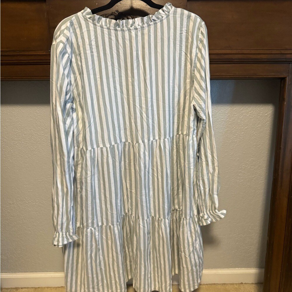 Experience relaxed elegance with this Dip sundress, showcasing a tiered design in refreshing white and green tones. The long bishop sleeves and collared neckline enhance its casual resort wear appeal. Perfect for leisurely days, this dress offers a breezy, flowy silhouette.