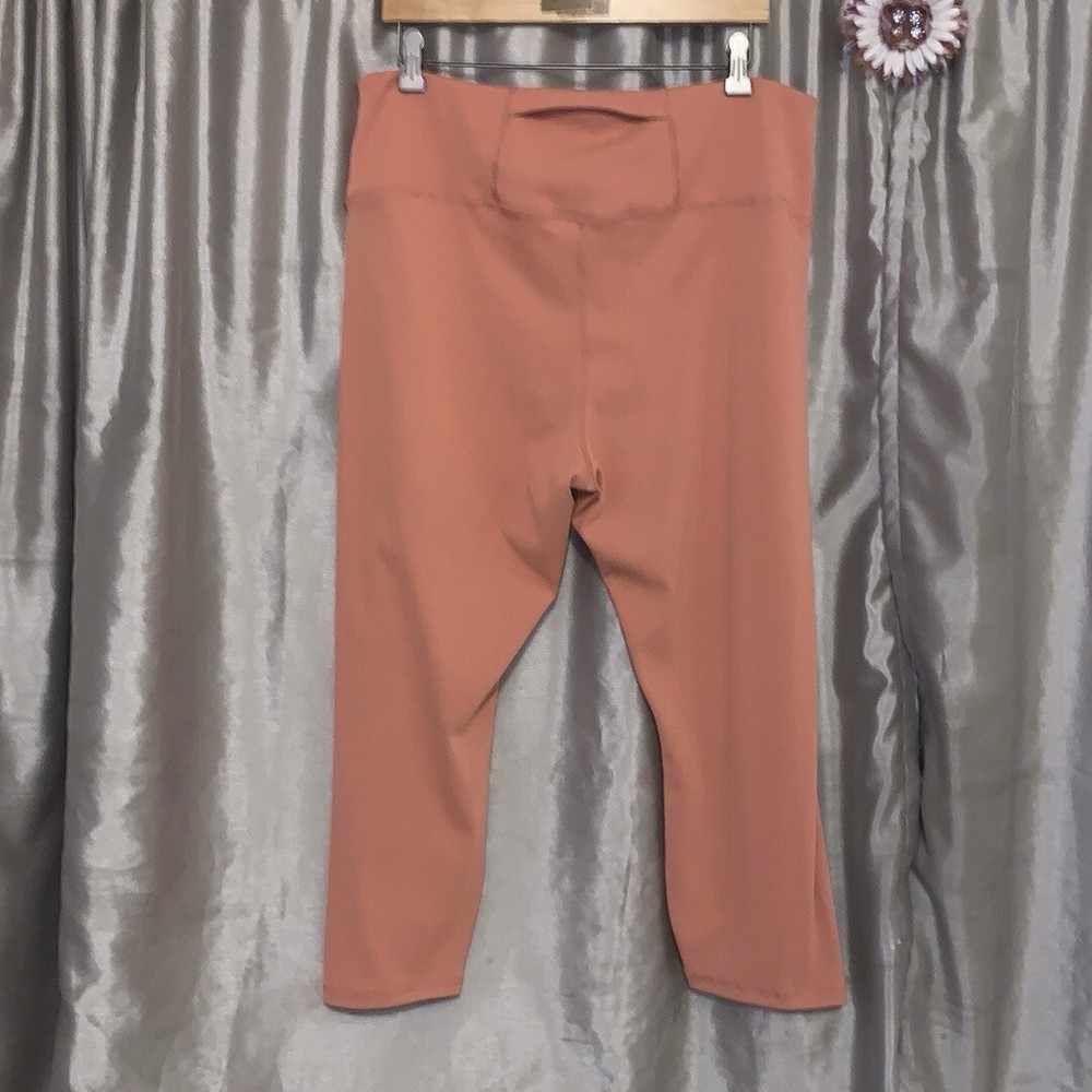 Dip Woman's 2X Ribbed Capri Leggings Orange Gym Workout Yoga Size woman’s 2X Waist measures 17 inches Rise measures 13 inches Inseam measures 22.5 inches Excellent condition Polyester spandex Excellent condition Ribbed Back pocket Machine wash cold
