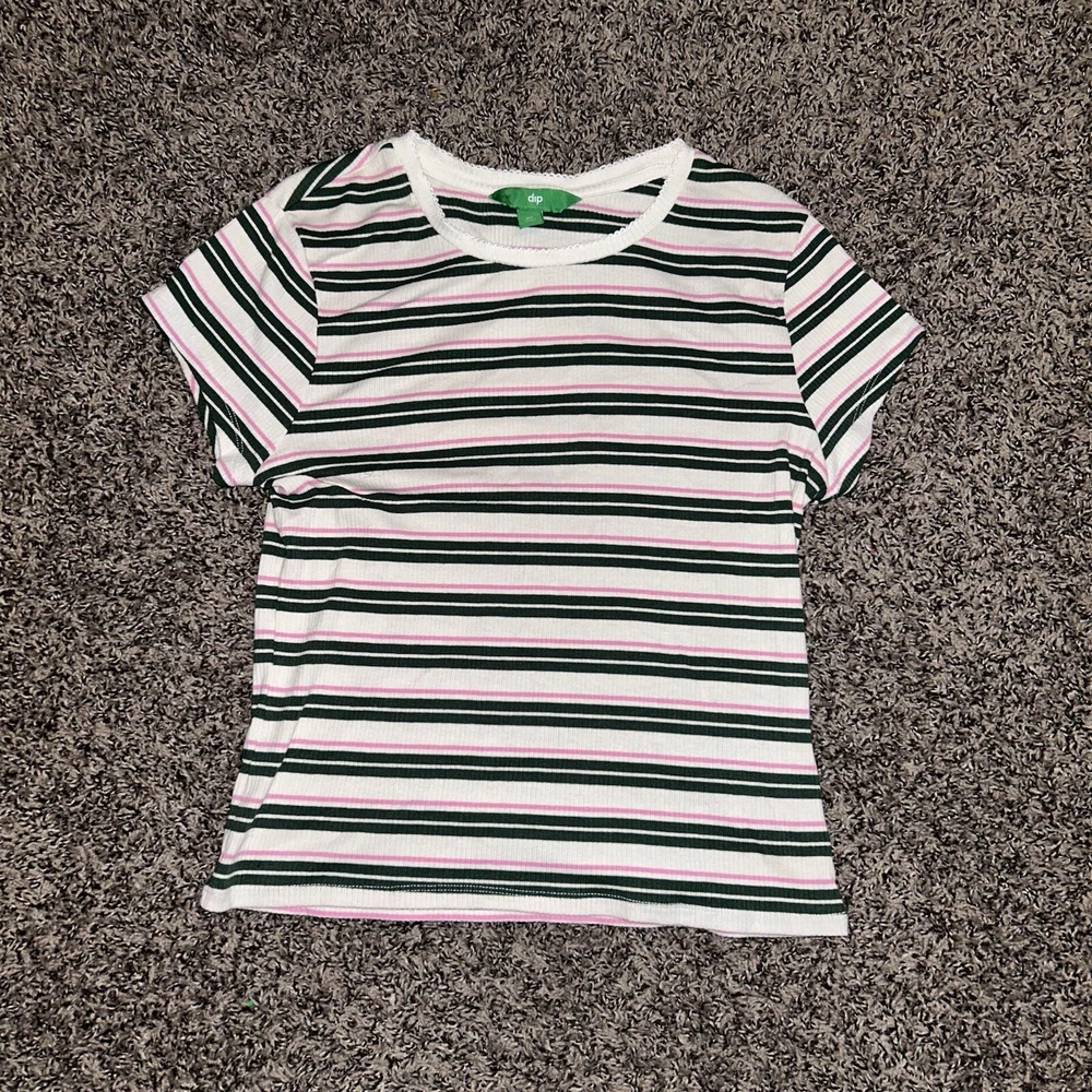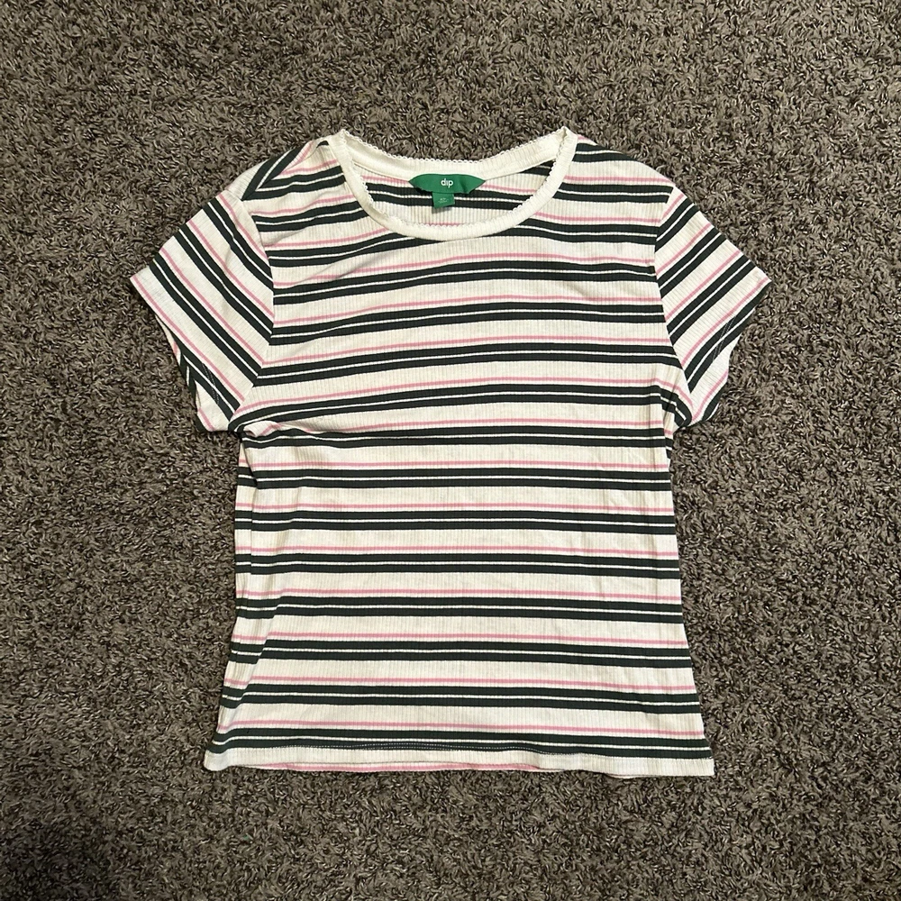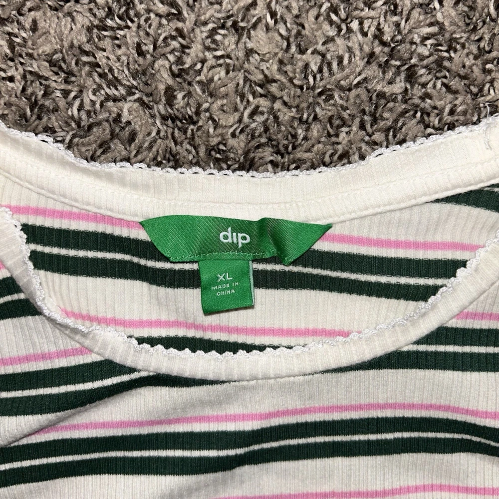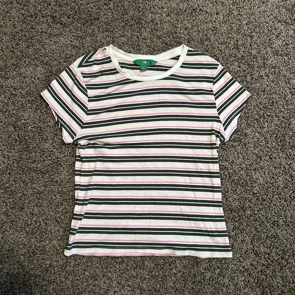 This Dip brand women's shirt is perfect for any casual occasion. The multicolored striped pattern adds a touch of fun to the basic style, while the cotton and cotton blend material ensure comfort all day long. The short sleeves and crew neckline make it a great choice for warm weather, and the XL size is perfect for a regular fit. This blouse is a must-have for any wardrobe, and can be paired with jeans or shorts for a trendy and stylish look.