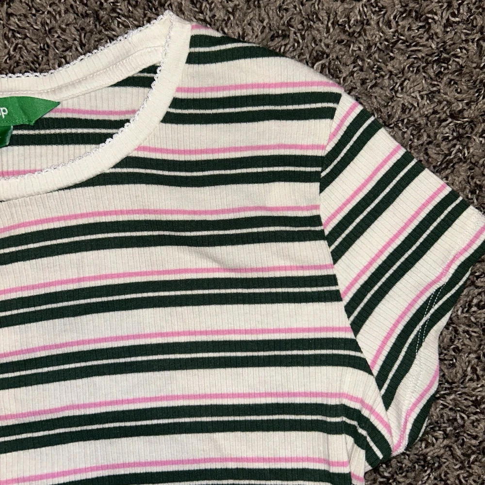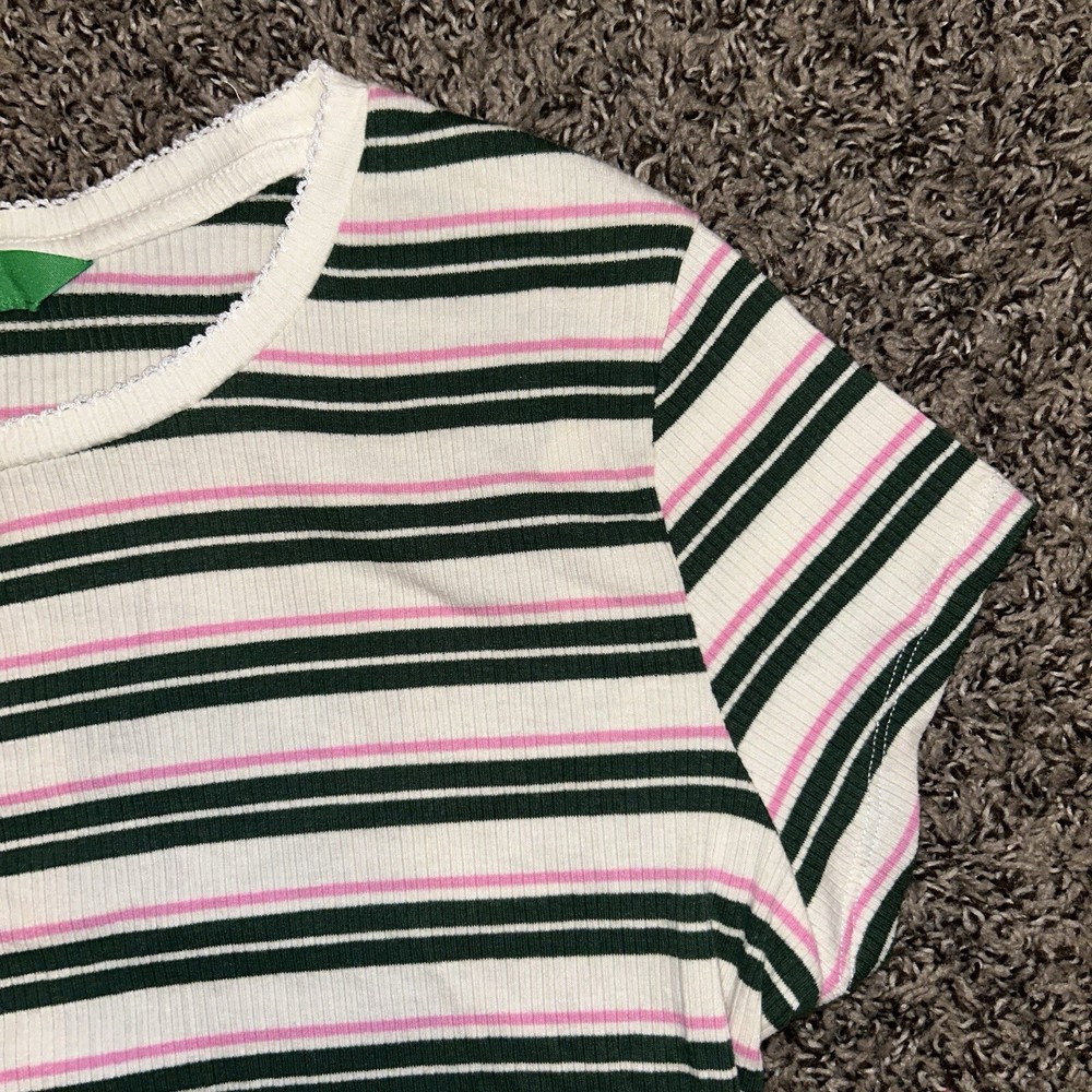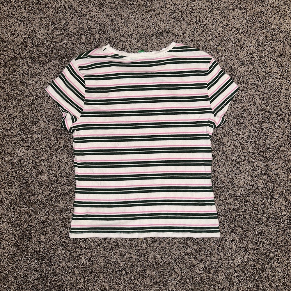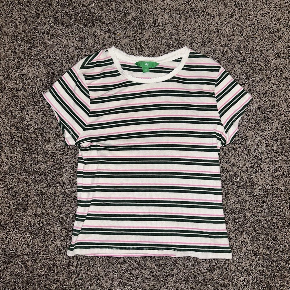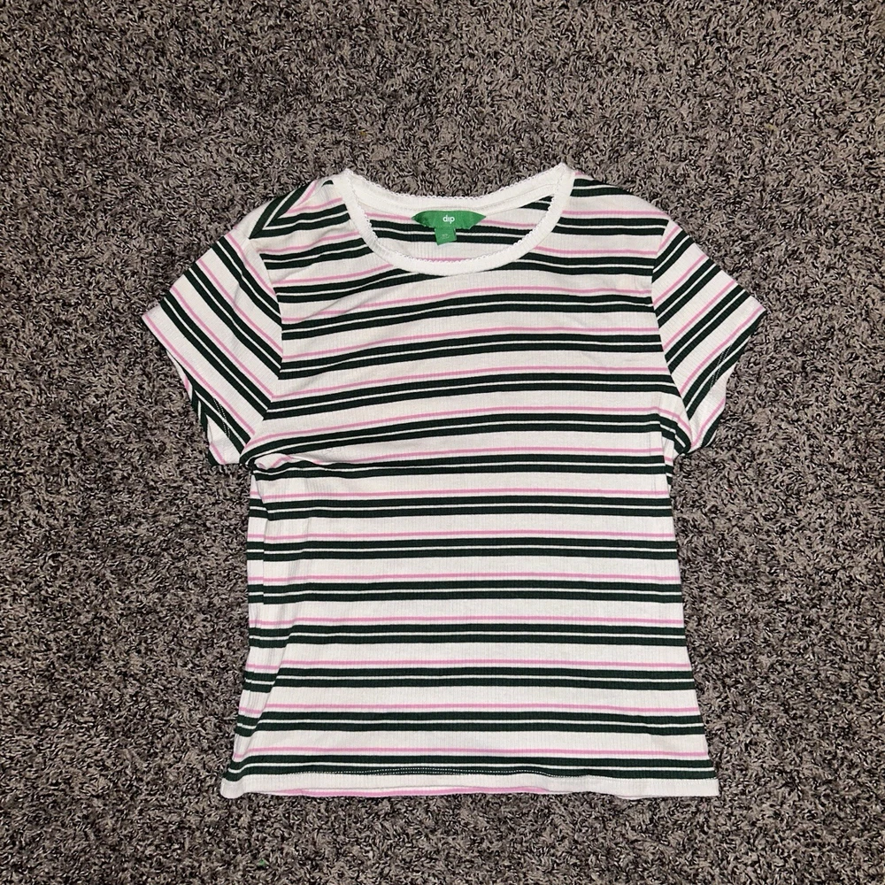 This Dip brand women's shirt is perfect for any casual occasion. The multicolored striped pattern adds a touch of fun to the basic style, while the cotton and cotton blend material ensure comfort all day long. The short sleeves and crew neckline make it a great choice for warm weather, and the XL size is perfect for a regular fit. This blouse is a must-have for any wardrobe, and can be paired with jeans or shorts for a trendy and stylish look.