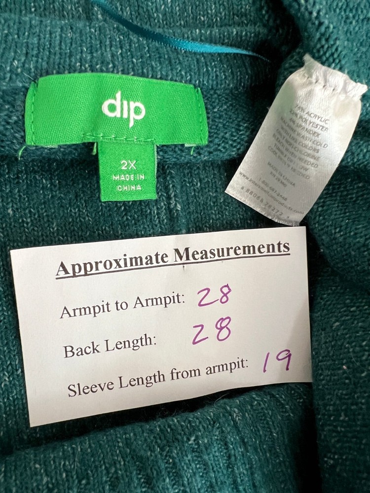 Welcome! ______________________________________________________ *** I do my best to list every inconsistency of item, if there are any, but it is the buyer's responsibility to look at all pictures, read description carefully, check measurements , and ask questions before bidding or buying. Thank You! *** If you are super picky about item condition, please do NOT bid on or buy my items. ______________________________________________________ Up for sale is an adorable Dip sweater size 2X in excellent condition . **Please compare measurements to your favorite fitting garment to ensure accurate fit.** SEE LAST PHOTO FOR APPROXIMATE MEASUREMENTS _______________________________________________________________________ DISCLAIMER: Payment must be received within 4 days of auction end date and time. Purchase will automatically be cancelled after 4 days of non-payment, NO EXCEPTIONS. This will result in a mark against you on your account – per eBay. Buyer will also be permanently blocked from all of my sites. Please let me know if you need to cancel a sale before the 4-day period. _______________________________________________________________________ **** RETURNS ARE NOT ACCEPTED FOR ANY REASON. ALL DEFECTS MAY NOT BE LISTED . PLEASE use the zoom feature over photos to ensure you know what you are purchasing! _______________________________________________________________________ Please contact me with any questions or concerns. Thanks for looking!