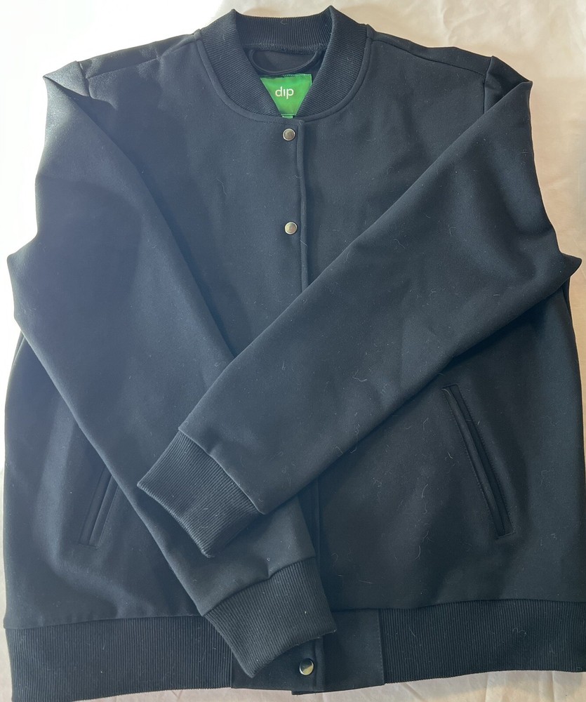 Elevate your outfit with this stunning Dip women's jacket in size Large. Designed with a mid-length style and made from high-quality polyester, this outerwear is perfect for any outdoor occasion. The black color and snap closure add a touch of elegance and versatility to your wardrobe. Featuring long sleeves and accents of snaps, this regular fit jacket is suitable for all seasons including winter, fall, and spring. The jacket is perfect for women and is a great addition to your collection. See below for more details on this non-new item.