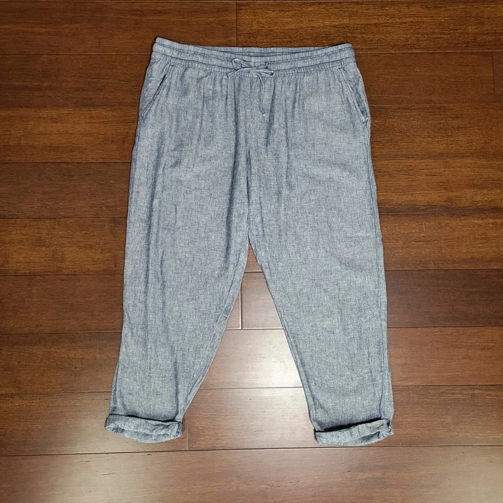Dip Women's Blue Chambray Cropped Cuffed Lightweight Cotton Casual Pants Size XL Good condition with no flaws noted. Please see pictures for measurements.