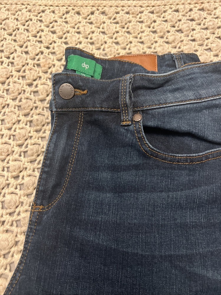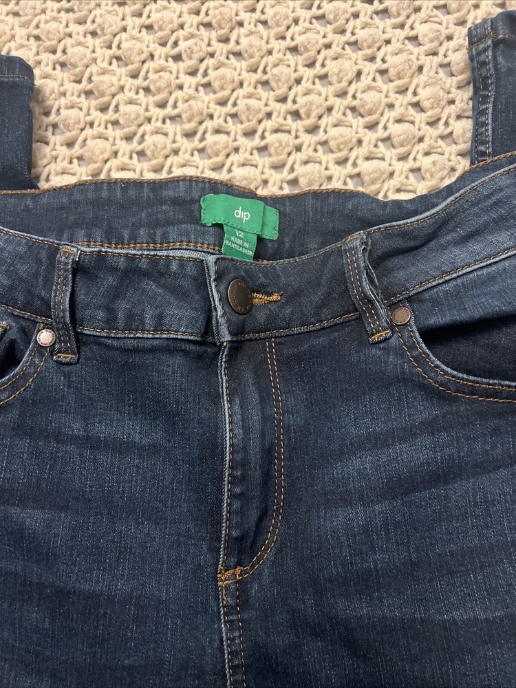 Elevate your denim game with these Dip women's jeans in a gorgeous shade of blue. Crafted from a comfortable cotton blend fabric with a denim texture, these jeans feature a high-rise waistline and a skinny leg fit. The 5-pocket design with button and zipper accents adds a touch of sophistication to the overall look. These jeans are perfect for any occasion and can be dressed up or down effortlessly. The medium fabric wash and stretchy fabric make them easy to care for and comfortable to wear. With a waist size of 30 inches and an inseam of 27 inches, these Dip jeans are a must-have addition to any fashion-forward woman's wardrobe. Smoke free home! Like new