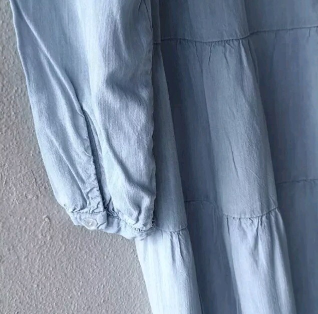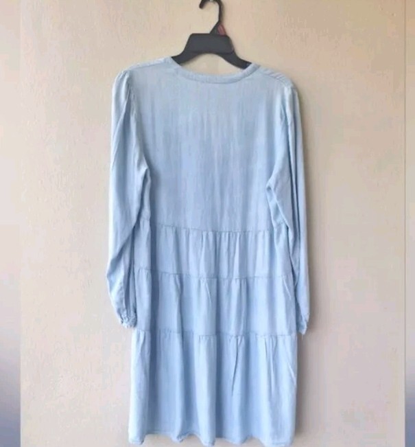 Dip Women's Light Blue Denim Tiered Ruffle Notched Neck Dress Size L Measurements Full Length: 38" Pit to pit: 20" Pre-owned...