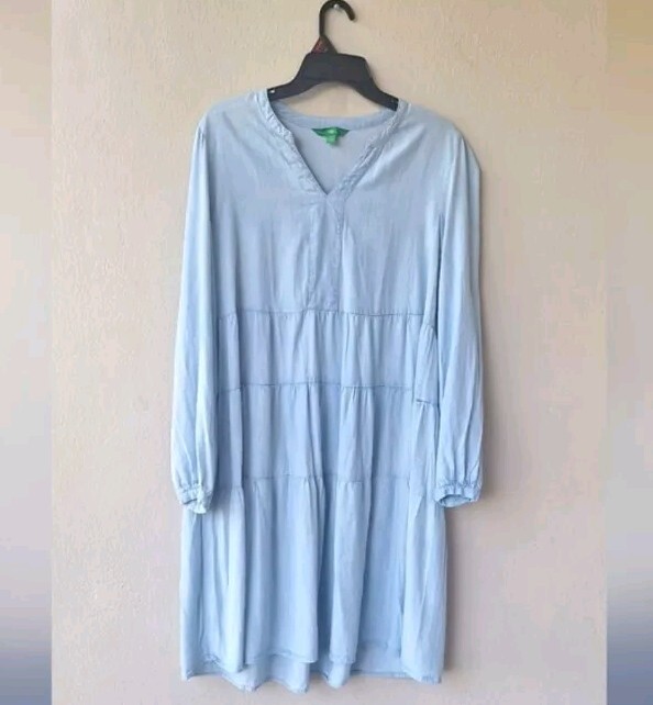 Dip Women's Light Blue Denim Tiered Ruffle Notched Neck Dress Size L Measurements Full Length: 38" Pit to pit: 20" Pre-owned