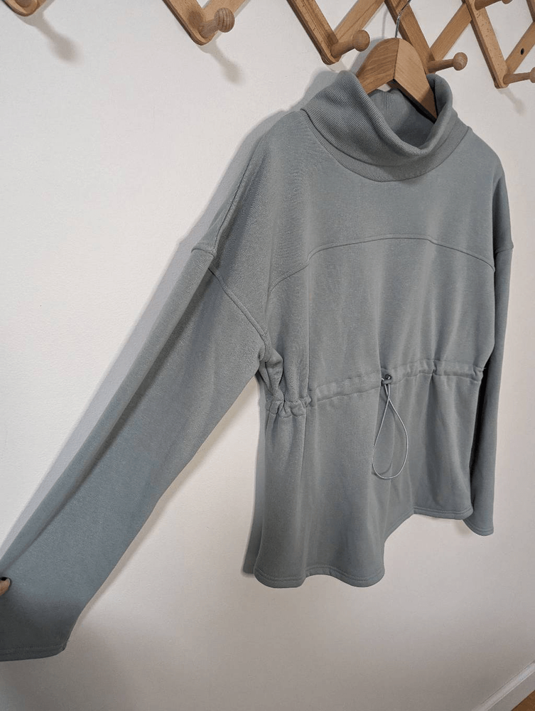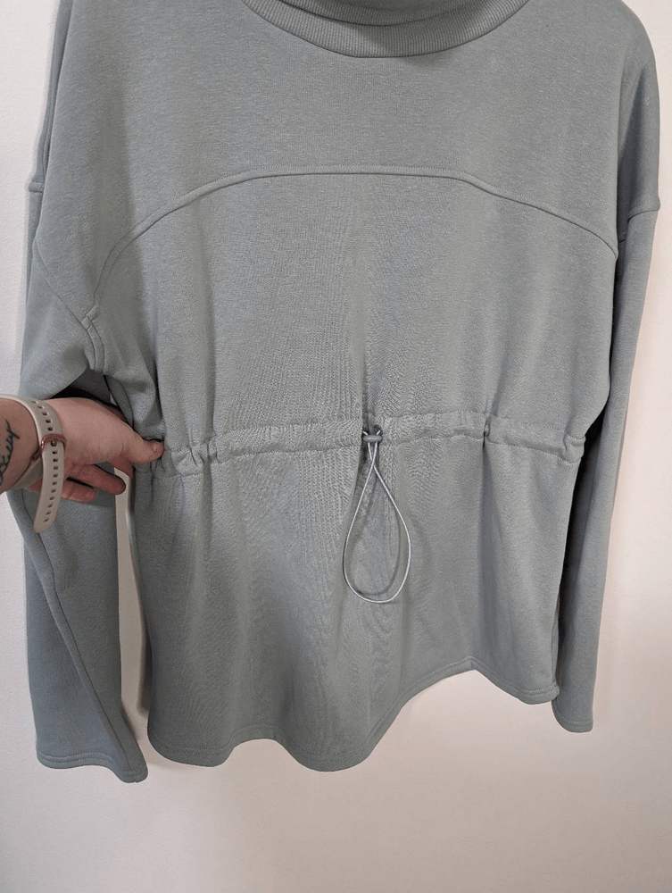 Dip Women's Long Sleeve Drawstring Waist Turtle Neck Sweater Sage Green Excellent used condition - Like new! Very soft inside - only worn/washed maybe once Drawstring waist Size L Approximate flat lay measurements Pit to pit 23.5" Length 29"