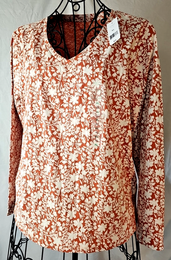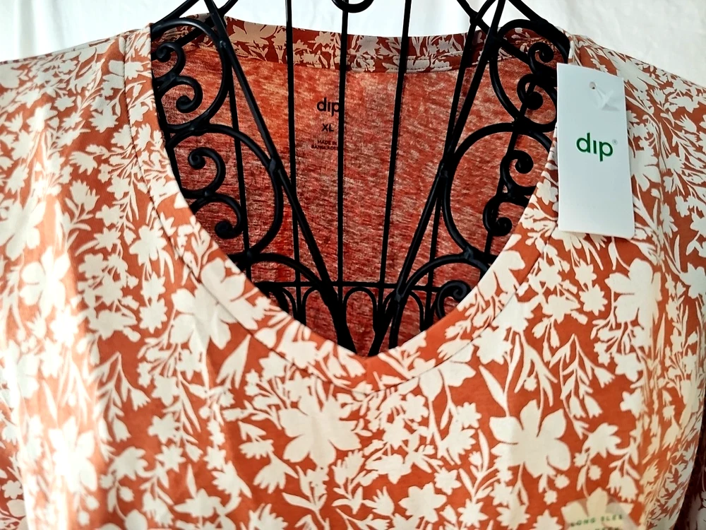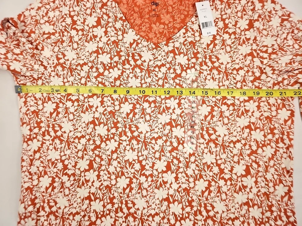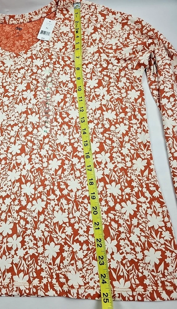 Dip Women's Orange w/ White Floral Long Sleeve T-Shirt Size XL 100% Cotton Knit in brand new, with tags condition. See photos for measurements. Thank you for viewing this listing. Please reach out to us directly with any questions you may have. We ship Monday through Friday. If your order comes in on Friday evening, it will ship out on Monday next. Note that we offer free, no questions asked returns for up to 30 days after purchase. If you're not happy with the item for any reason after purchase, simply open a return, send it back for free, and we will refund your money in full. Thanks and have a great day!