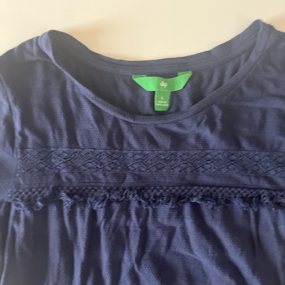 Dip Women's Size L Shirt Blouse Navy Blue Boho Fringe Maximalist 100% Cotton. Condition is Pre-owned - Good.