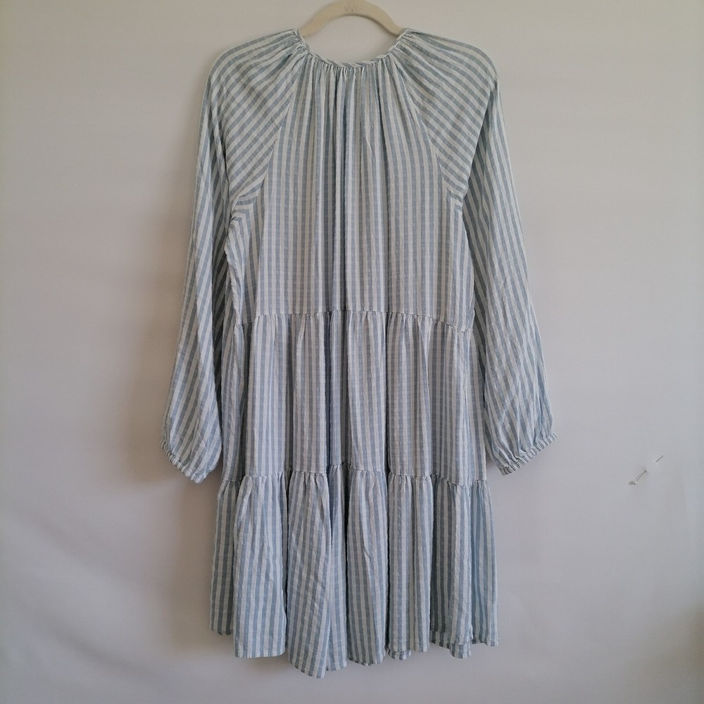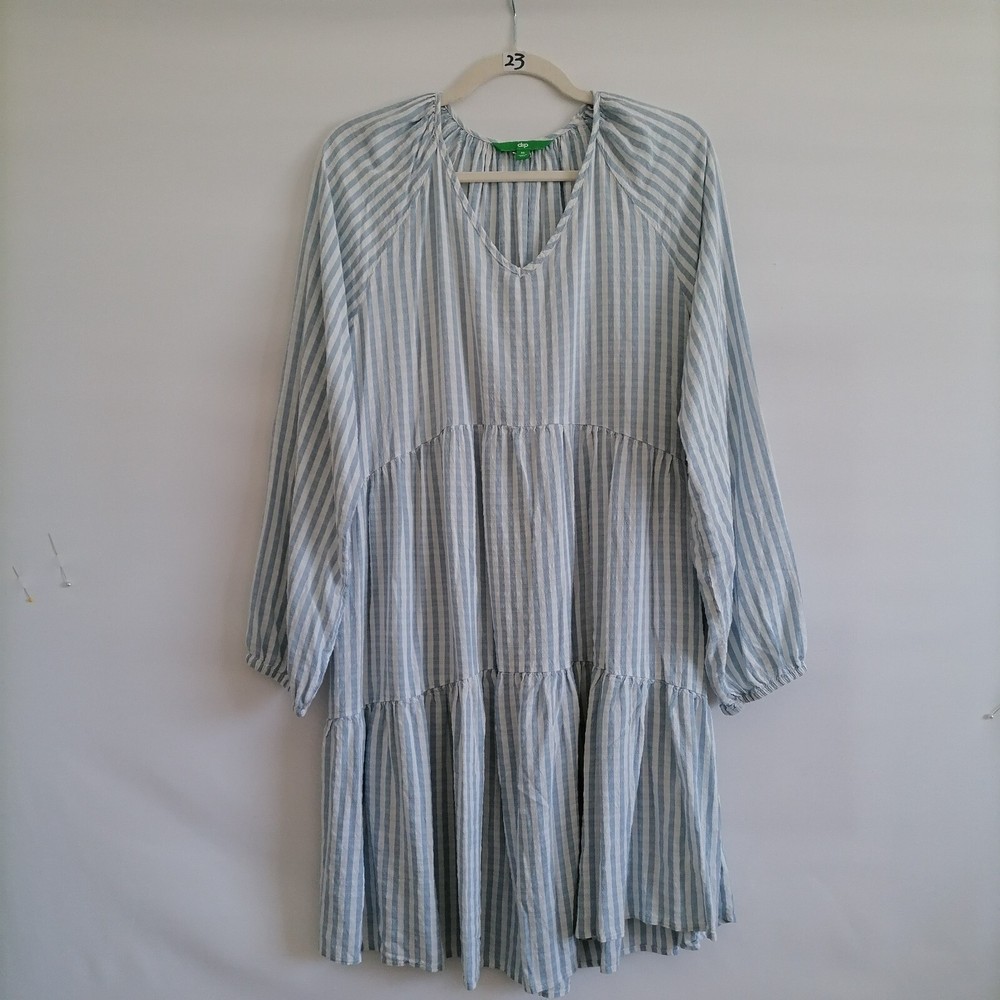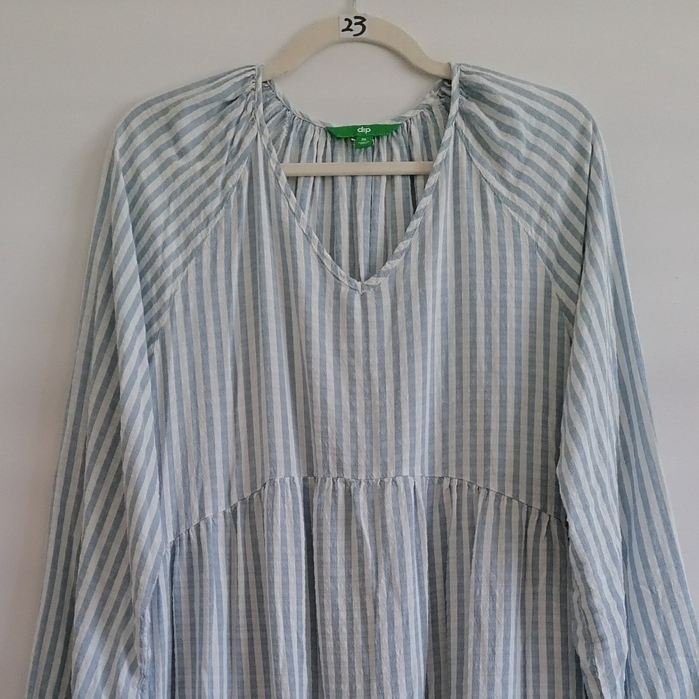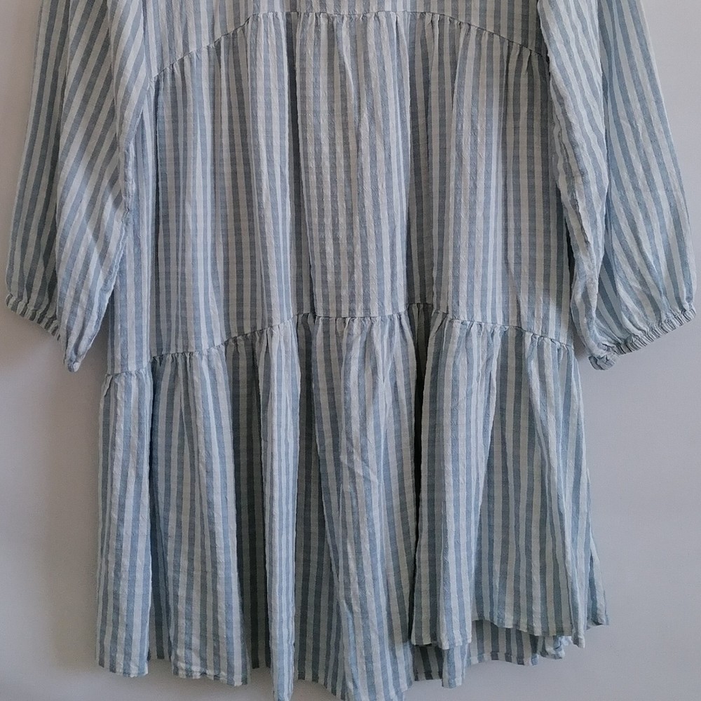 Dip Womens Sky Blue Drop Shoulder V-Neck Striped Cottagore Tiered Dress Size XL Pre-Owned In Great Condition. Approximate Measurements With Flat-Lay In Inches: Pit to Pit: 21" Length: 36" Sleeve: 27" Waist: 20" Brand: Dip Size: XL Color: Sky Blue Sold as pictured! Thank you for looking! SKU: 550-23,Edp