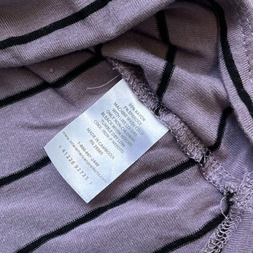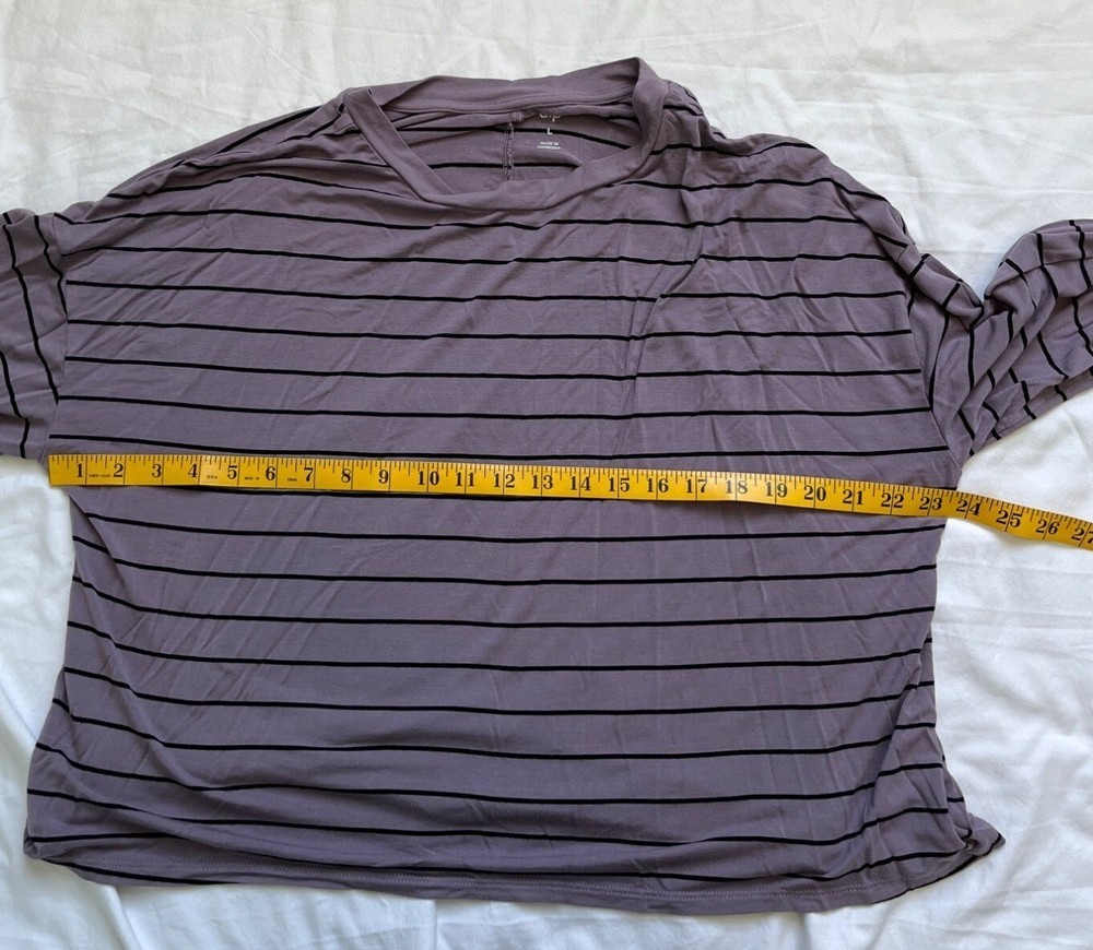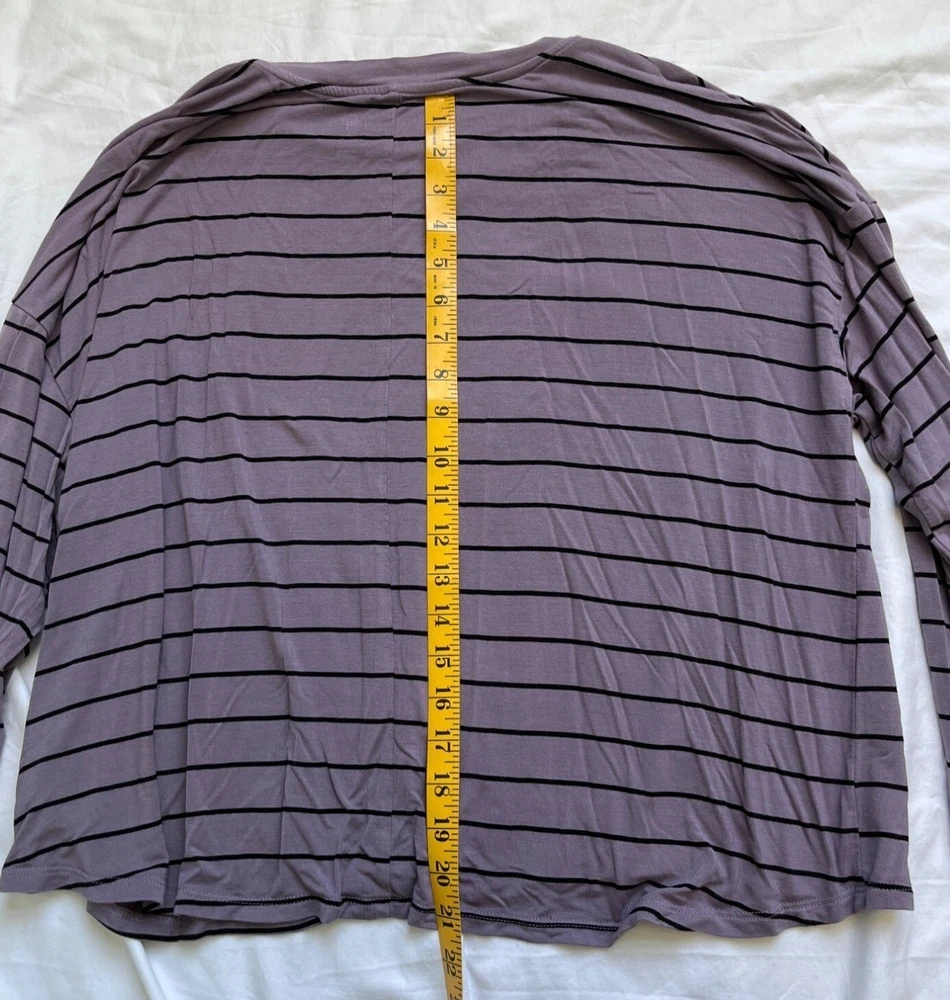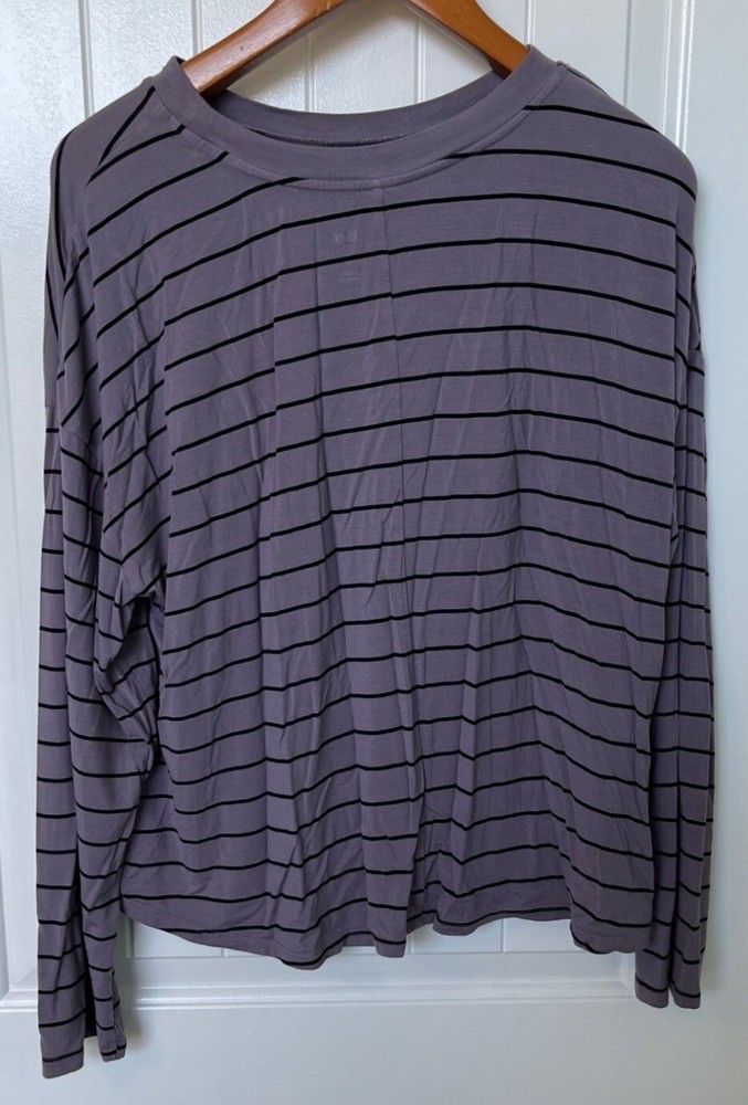 This lightweight striped top provides comfort and style with its relaxed fit and long sleeves. Made from soft fabric, it pairs well with casual outfits. Very nice condition. • Made From 95% Rayon & 5% Spandex • Features a Crew Neckline • Machine Washable & Easy Care • Loose-Fit Design For Comfort Approximate Measurements: Armpit to Armpit: 23.5" Full Length: 21" Sleeve Length: 20" Please see pictures for condition. If you have any questions, please let me know. Thank you for visiting our Ebay Shop. We are happy to consider all reasonable offers. Discounted combined shipping is available for multiple item purchases. We pride ourselves on customer service. If you are not happy with your purchase, please contact us within 30 days for a hassle free return..