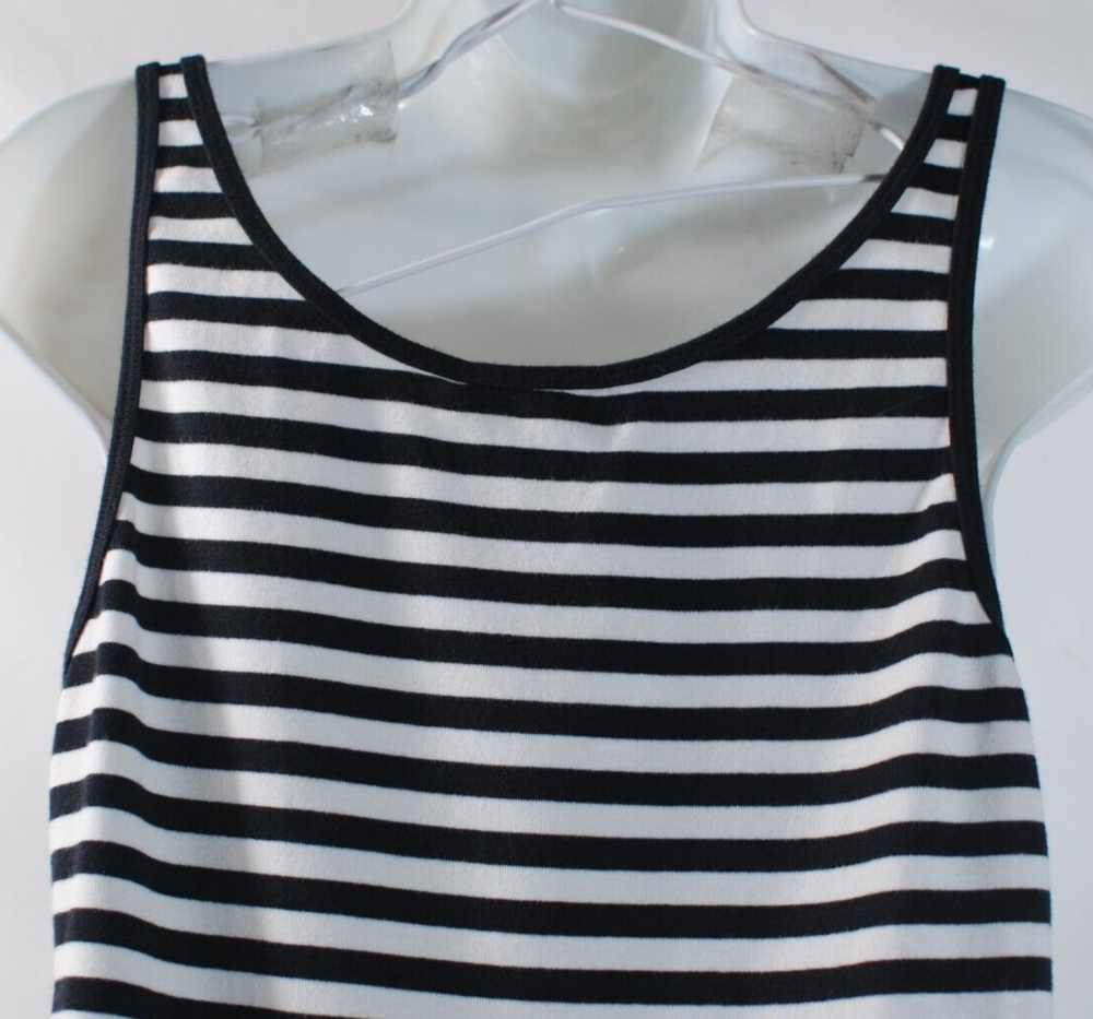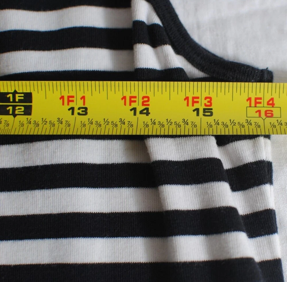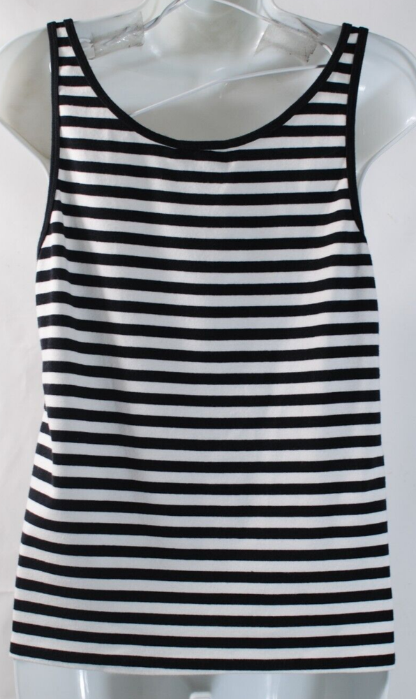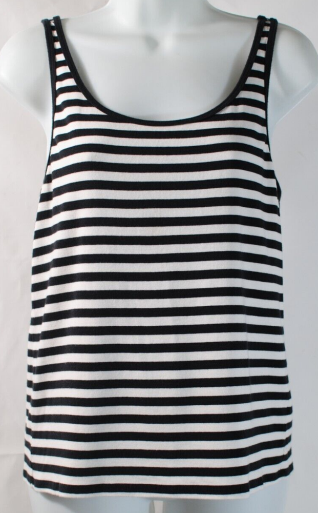 Bellows Boutique For your consideration is To Elevate your summer wardrobe with this classic black and white striped tank top from Dip. Featuring a round neckline and wide straps, this sleeveless top is made from a comfortable cotton blend fabric that is breathable and easy to care for. Perfect for travel or casual occasions, this tank top has a classic fit and is available in size L. The collarless design and pullover closure make this tank top a versatile addition to your wardrobe, while the striped pattern adds a touch of style. Measures Shoulders 11" Chest 32" Waist 36" Sleeve 0 total Length 23" REFUNDS Please refer to eBay Guarantee Policy. e B a y MONEY BACK GUARANTEE PAYMENT SHIPPING I estimate shipping costs and try to be reasonable and as accurate as I possibly can be. All items to be mailed in one business day above receipt of payment If you are requesting combined shipping, please wait for invoice to be sent to you. Thank you