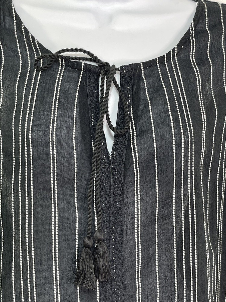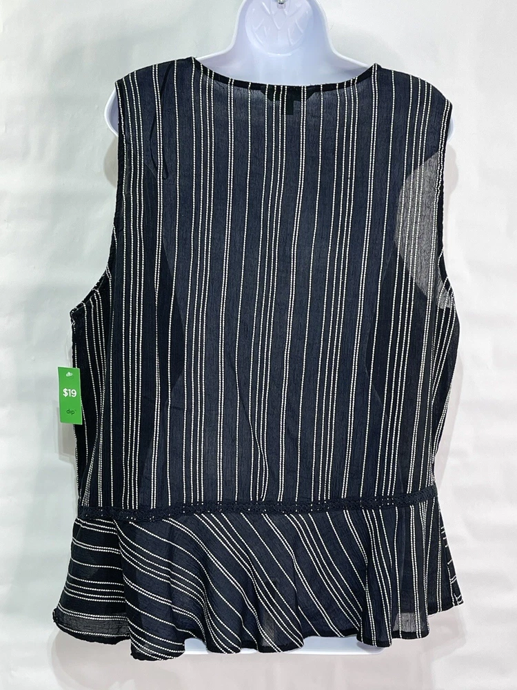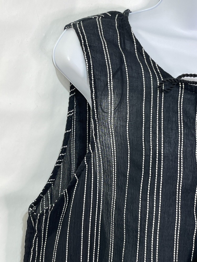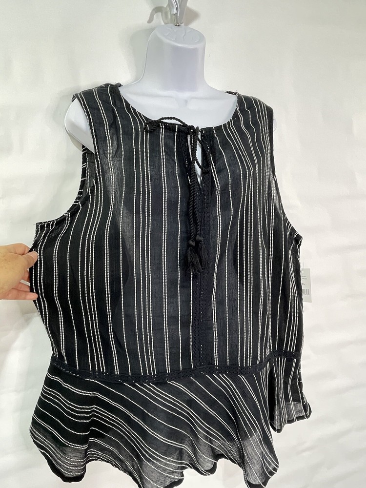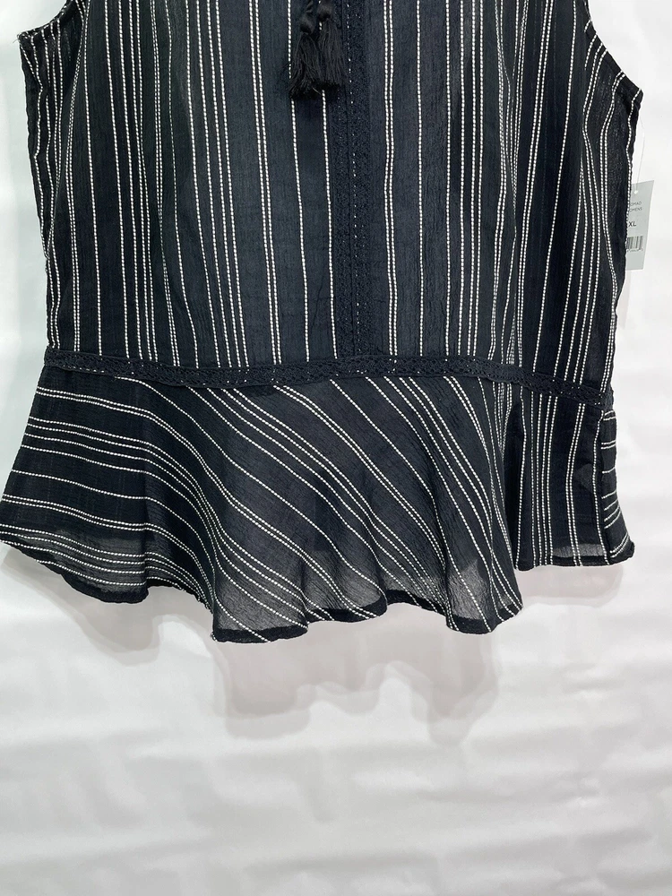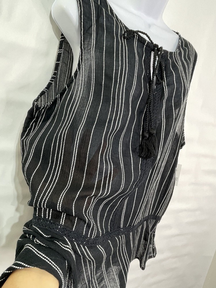 Dip Women’s Sz XL Black/White 100% Cotton Striped Tie Peplum Sleeveless Tank Top. Measurements laid flat are Length 28” Chest 47” #39 ya