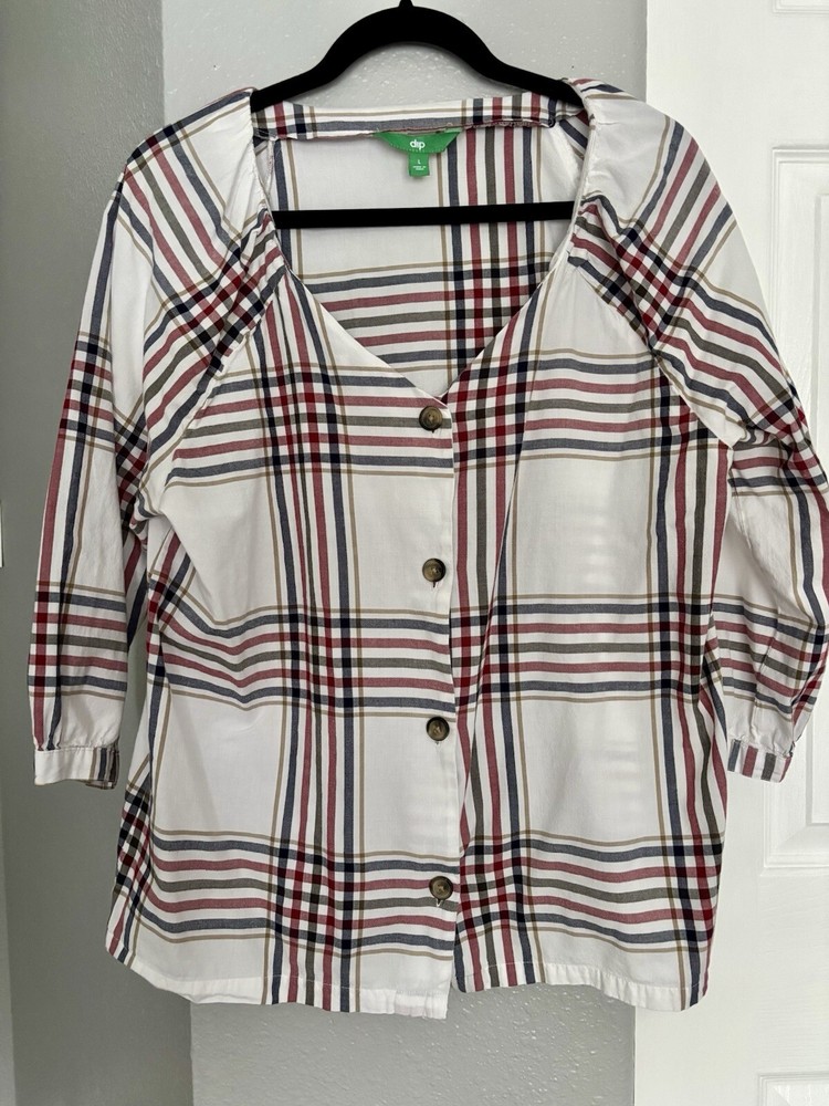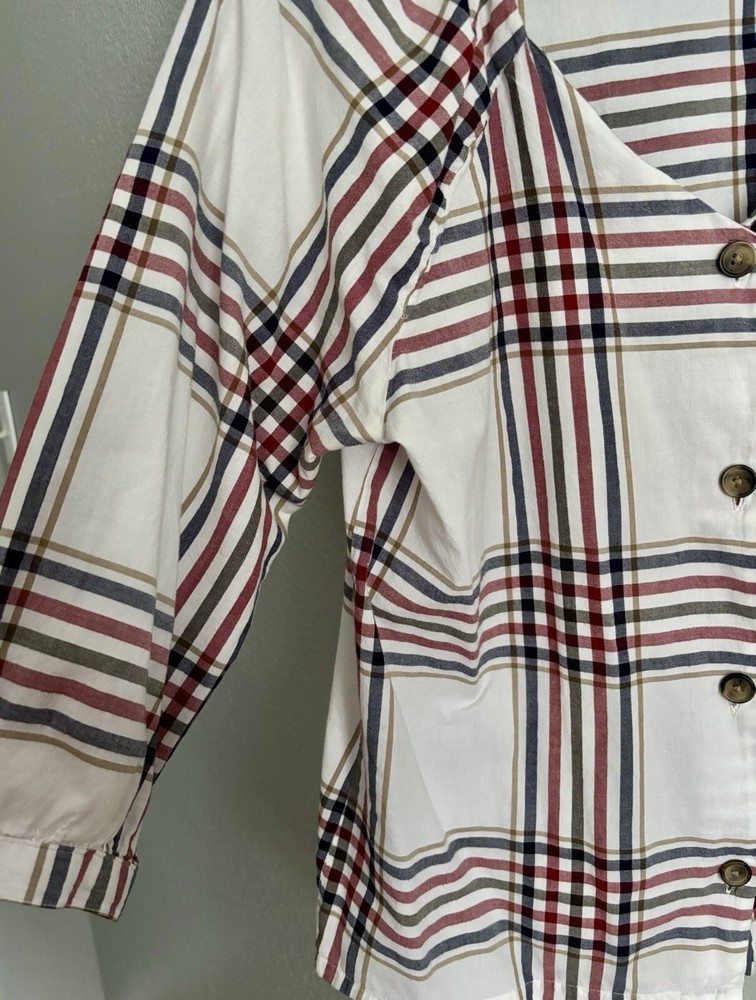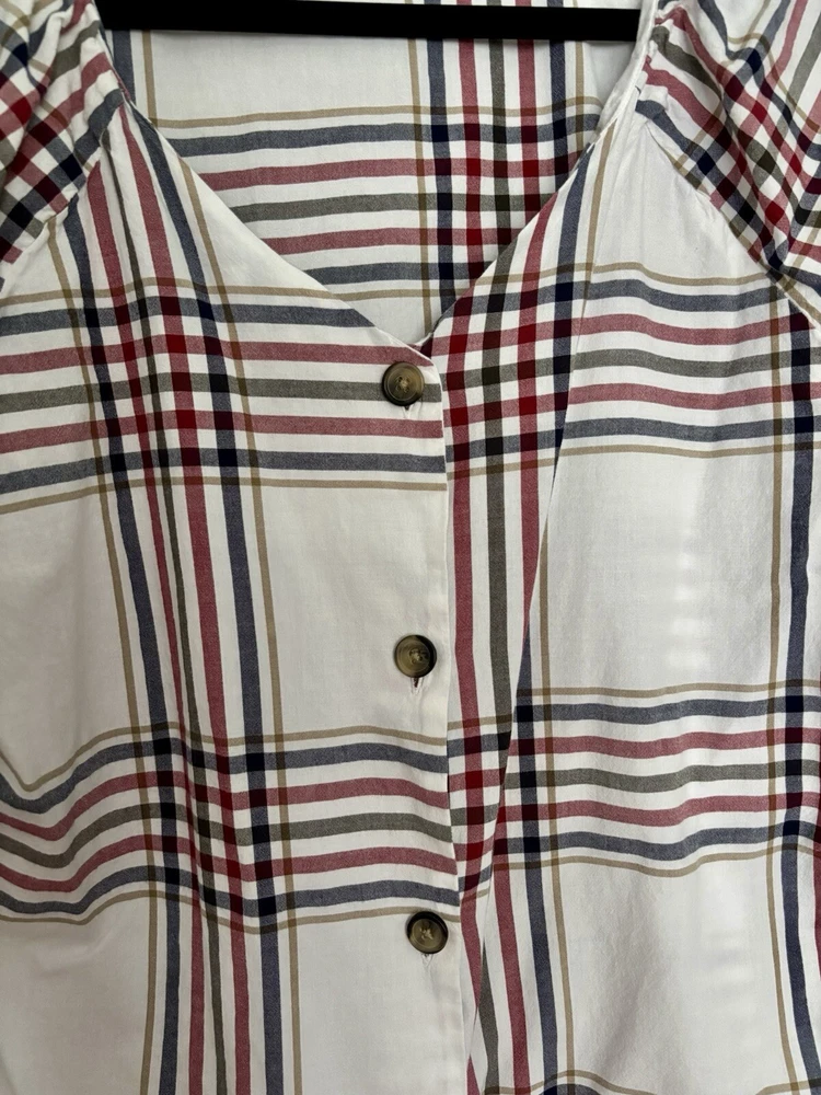 This top is an absolute gem! The soft cotton feels amazing, and the plaid pattern with the button details gives it such a cute, boho-chic vibe. The 3/4 sleeves and V-neck are so flattering—I’ve worn it everywhere, from brunch to date nights. It’s comfy, stylish, and the ruffles add just the right amount of flair. A must-have for any wardrobe!
