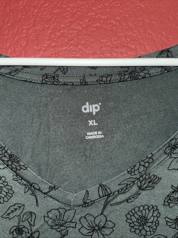 The Dip Women's XL Green Floral T-shirt is a stylish and comfortable top perfect for casual wear. With a relaxed fit and short sleeves, this V-neck t-shirt features a beautiful floral pattern on a green background. Made from soft rayon material, this basic t-shirt from the brand Dip is a versatile addition to any woman's wardrobe. Ideal for everyday wear, this t-shirt combines style and comfort effortlessly.