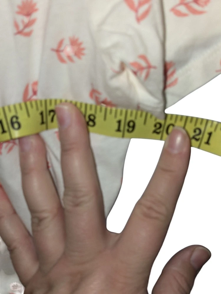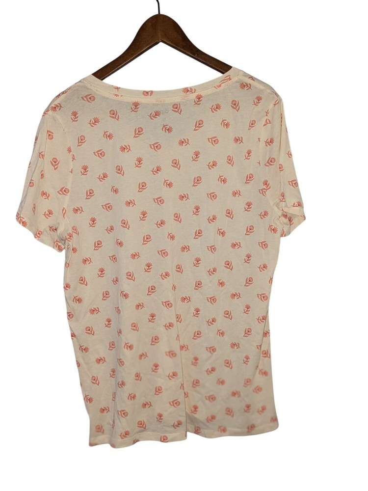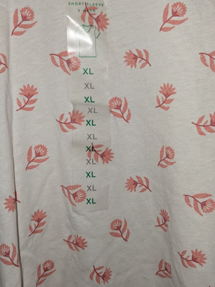 A lightweight short sleeve top featuring a delicate floral pattern. Comfortable with a relaxed fit, ideal for casual wear. • Short sleeve design • V-neckline • New with tags • Relaxed fit • Machine washable Armpit to armpit = 19 inches Top to bottom hem = 28 inches Features: • plus size Size: Womens XL Condition: New With Tags