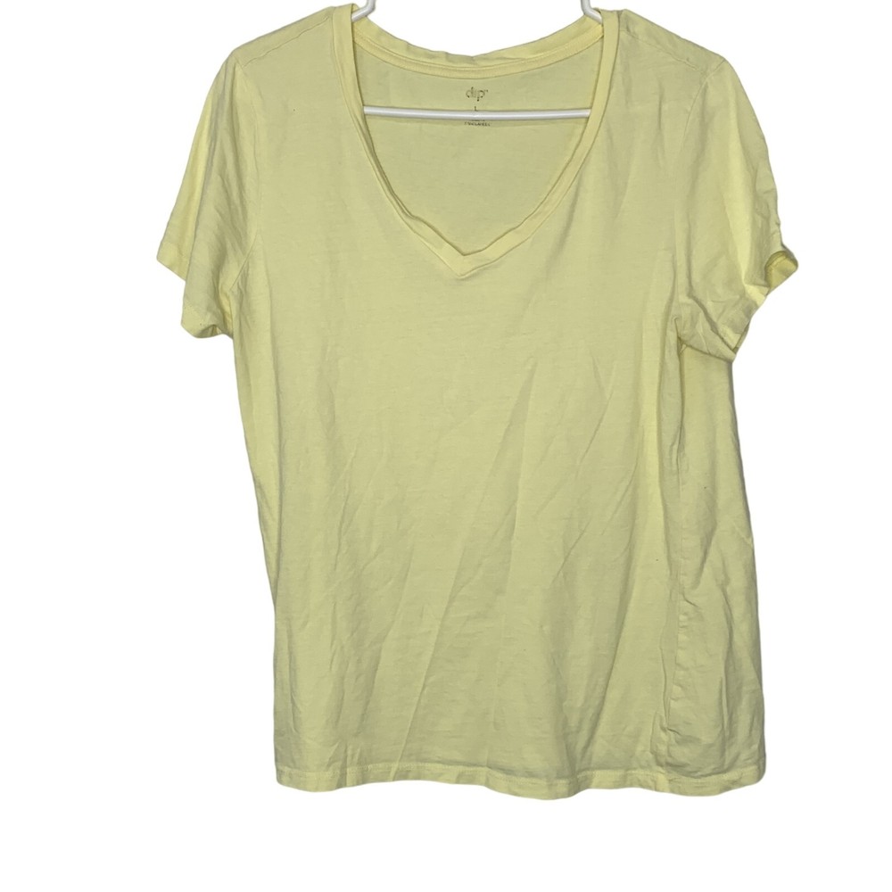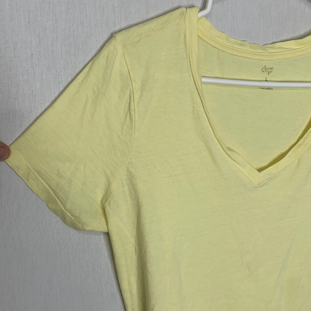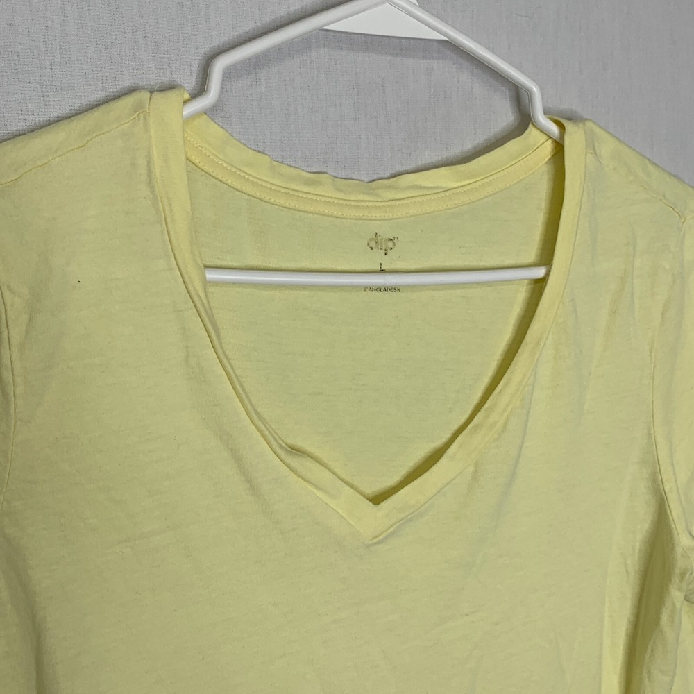 Dip Womens Yellow Cotton Short Sleeve V-Neck Pullover T-Shirt Size Large Brand: Dip Department: Women Color: Yellow Size: L Type: T-Shirt Style: Basic Pattern: Solid Sleeve Length: Short Sleeve Neckline: V-Neck Material: 100% Cotton Closure: Pullover Occasion: Casual Fit: Regular Vintage: No Country/Region of Manufacture: Bangladesh Condition: Pre-Owned, In Good Condition SKU: 1-1033-0017 Measurements Armpit To Armpit: 19" Length: 23.5" “Please examine and study all pictures carefully for damage, wear, condition, and missing parts and pieces. We try to state any defects but the items will arrive as they are pictured Thank you for your purchase! Please check out our other listings. My Purpose Thrift's mission is to work and partner with various local ministries, organizations, and nonprofits to help facilitate and monetize physical donations. We carefully select items that are in good to great condition to sell online and offer you the best products and best service. Be assured that your purchase will help local ministries/charities! We are a registered 501(c)3 organization. All Offers will be considered.”
