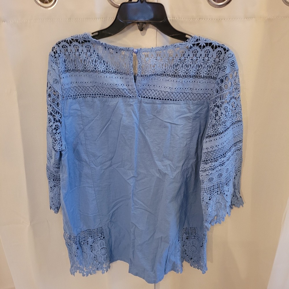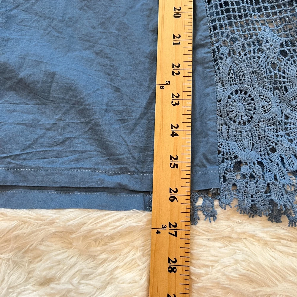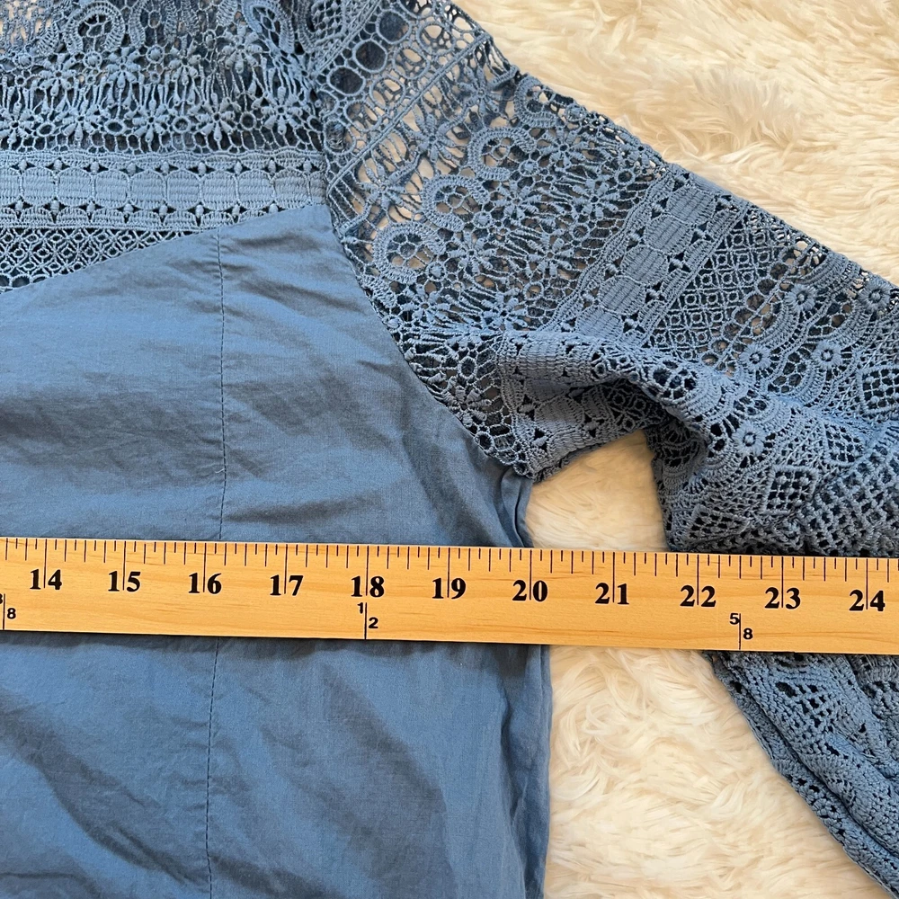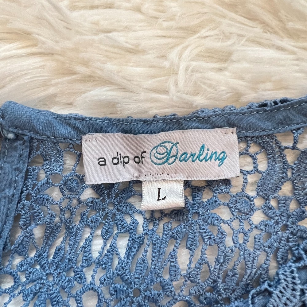 A Dip of Darling Womens Top Large Blue Patchwork Crochet Peasant Boho 13519 ***SEE PICS FOR MEASUREMENTS*** Very good condition It comes from a smoke free home. ( Due to colors capturing differently in photos, sometimes it’s hard to capture the exact color of the item.)