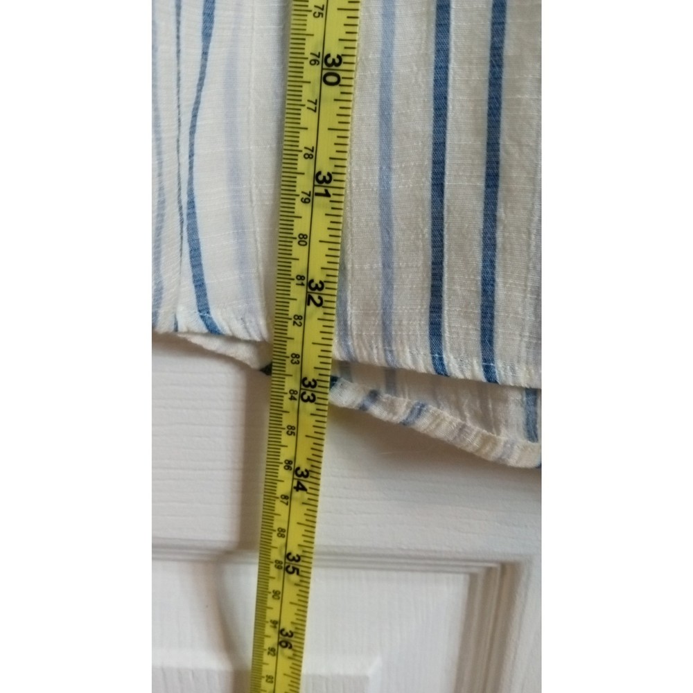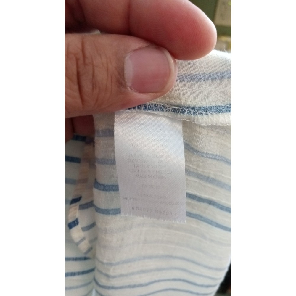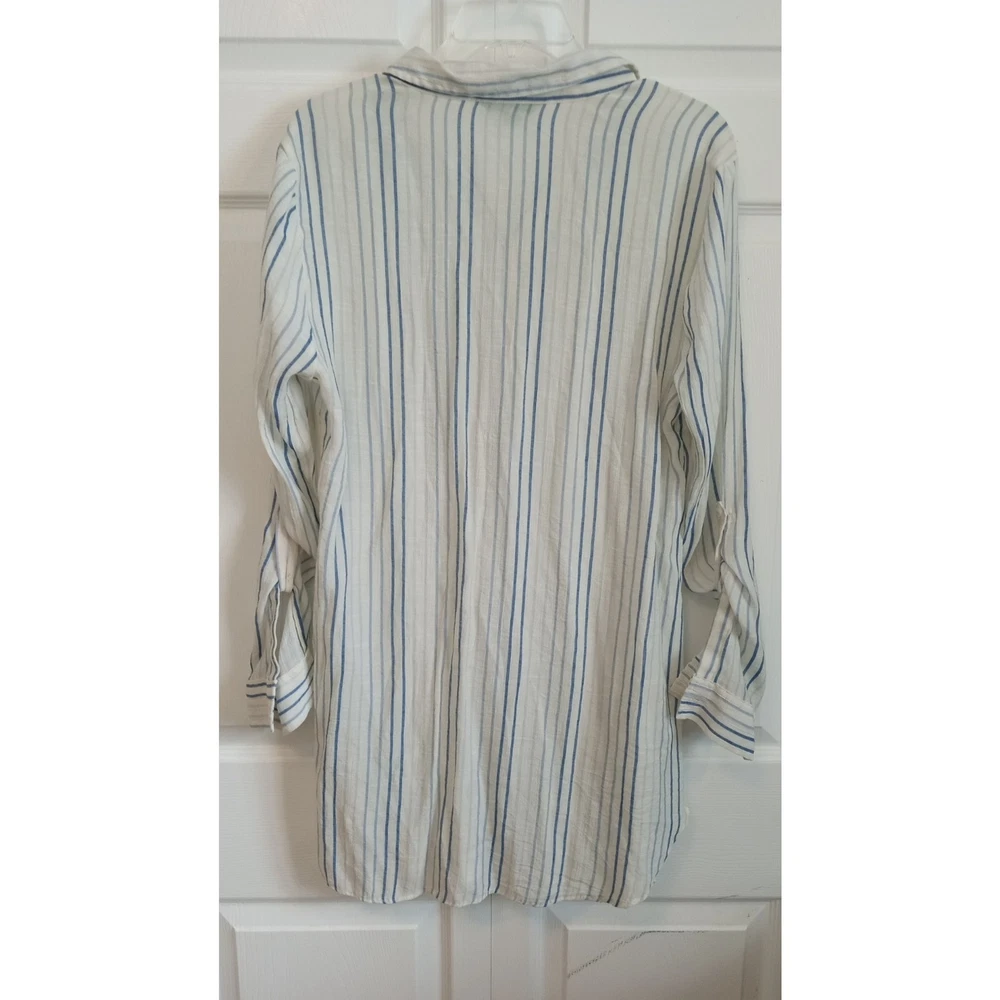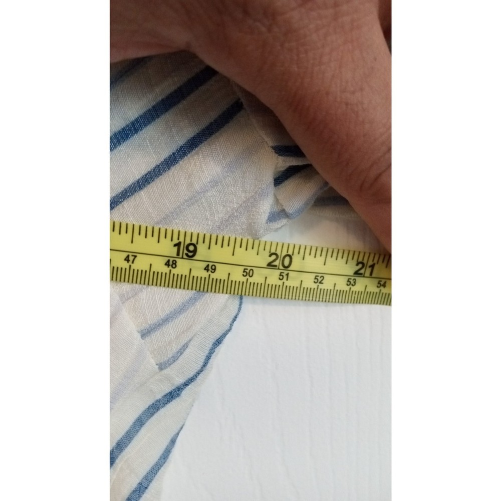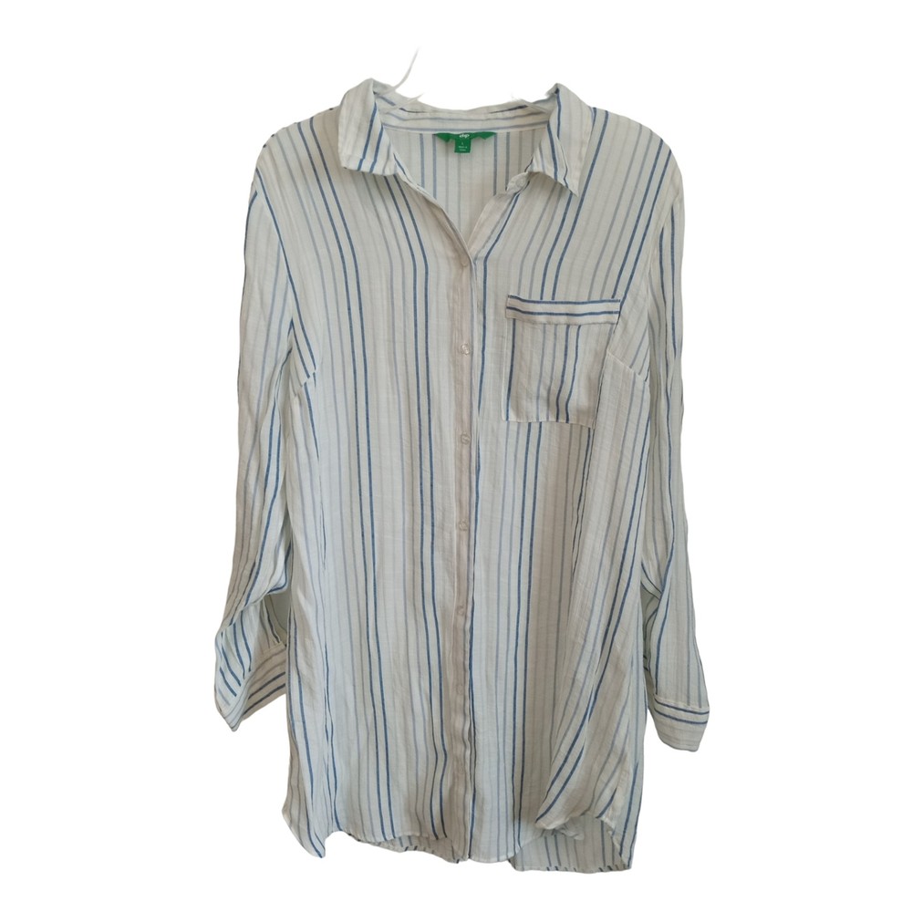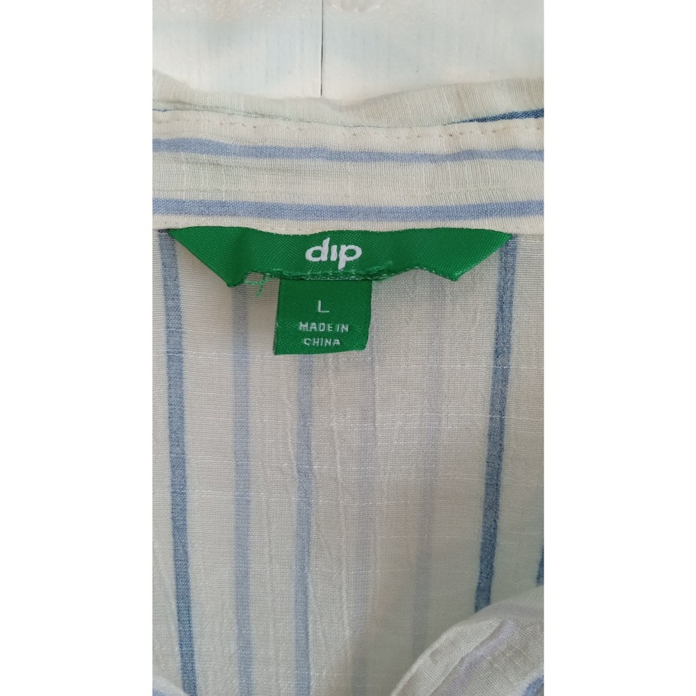 Dip women's white and blue stripe light weight button down. Good condition. Size Large. Rayon poly blend Approx. Measurements Armpit to armpit 20" Shoulder to bottom 33"...