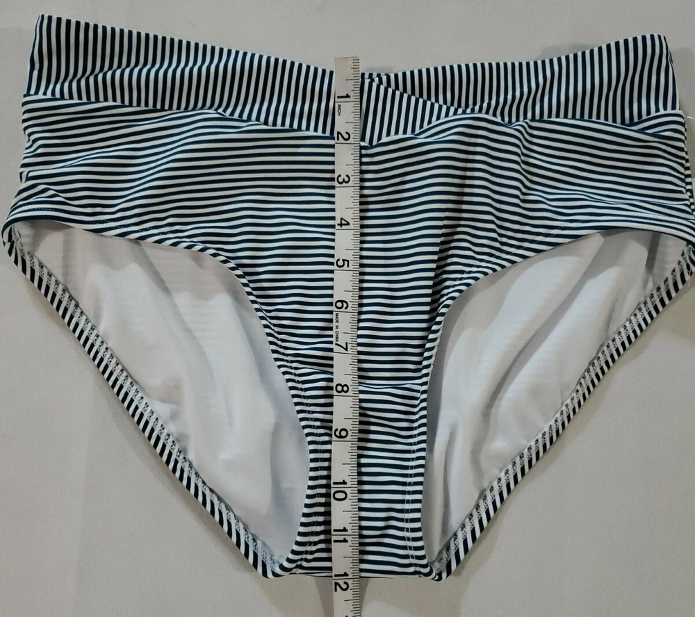 Dip~Higher waisted Bikini Bottom~Green and White Striped~NWT~Size Large Condition is "New with tags". Shipped with USPS First Class. Measurements are included in photos....