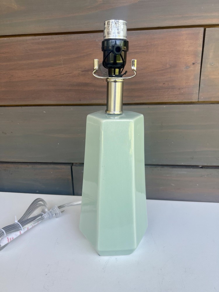 Made from dipped ceramic •Compatible with large lampshades •Socket turn knob rotary switch •1-way on and off Description This Dipped Ceramic Large Lamp Base from Threshold adds a modern accent to your interior lighting. This dipped ceramic lamp base features a cone-like shape in blue and white for an elegant look. Compatible with large lampshades, it easily turns on and off with a one-way socket turn knob rotary switch. Dimensions: 14.5” H 4” W