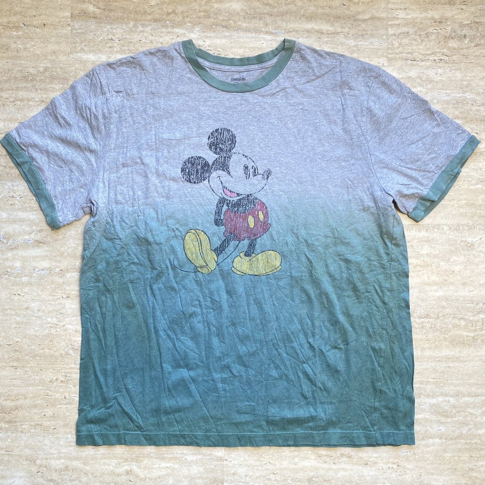 Disney Mickey Mouse Tee Shirt Adult Men's XL Green Ombre Dip Dyed Vtg Look ~ Chest 51" ~ Length 30.5" Gray/Green Hombre Runs very large. Shop measurements. In excellent condition....