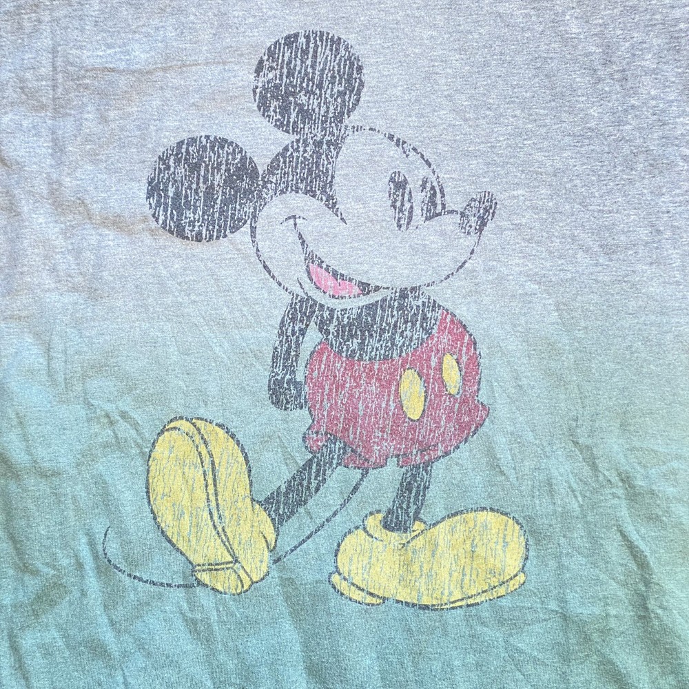Disney Mickey Mouse Tee Shirt Adult Men's XL Green Ombre Dip Dyed Vtg Look ~ Chest 51" ~ Length 30.5" Gray/Green Hombre Runs very large. Shop measurements. In excellent condition.