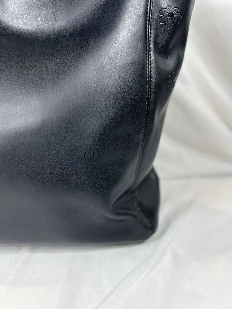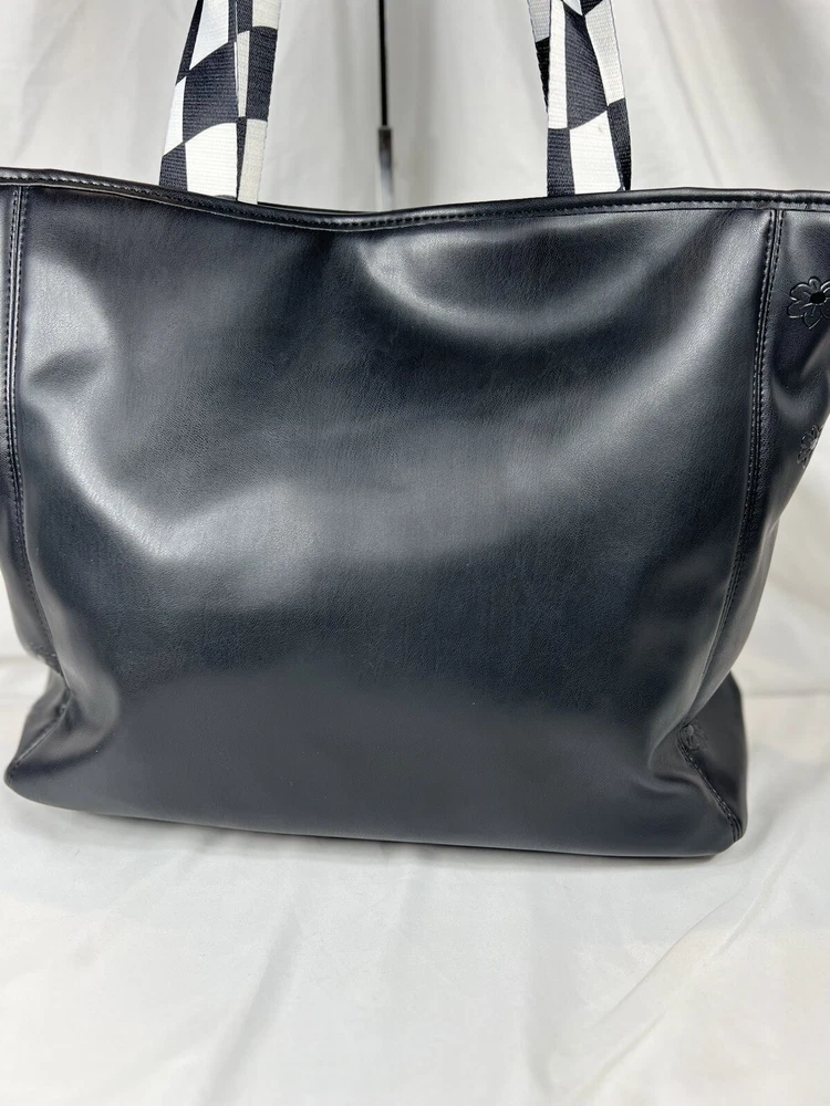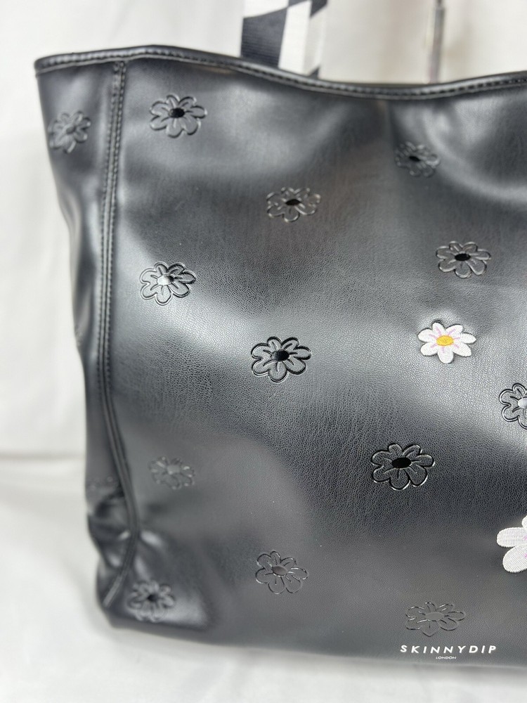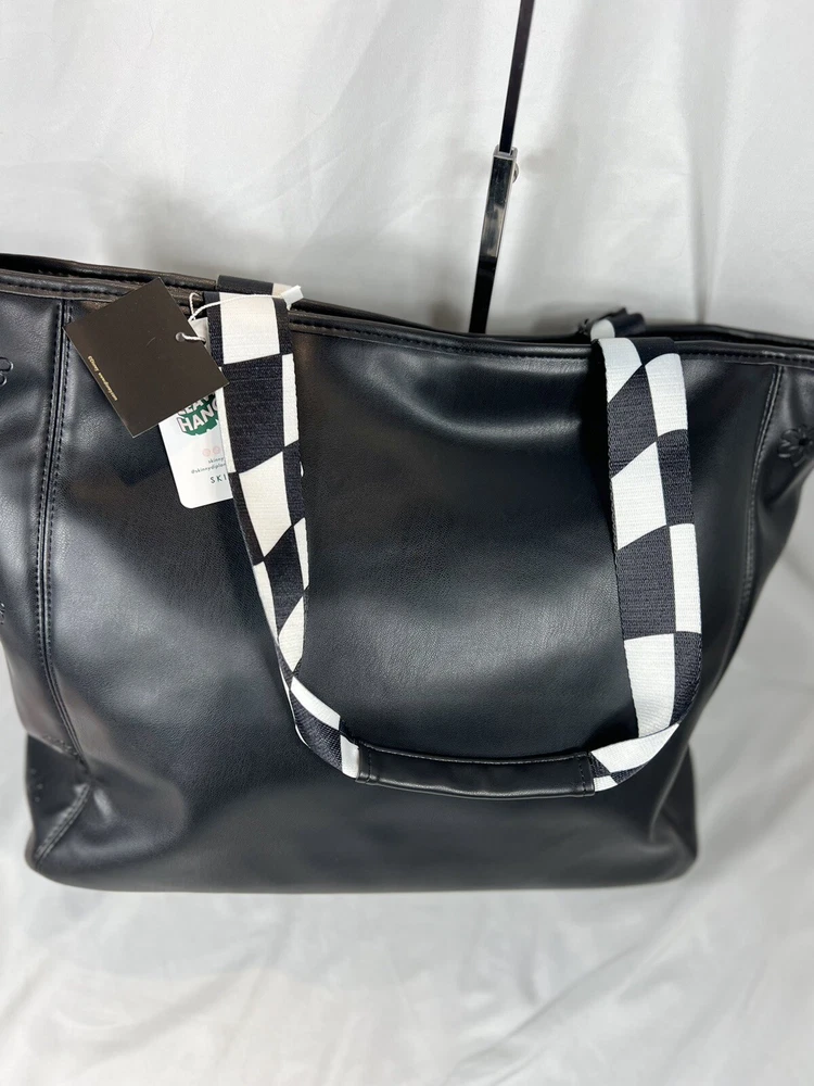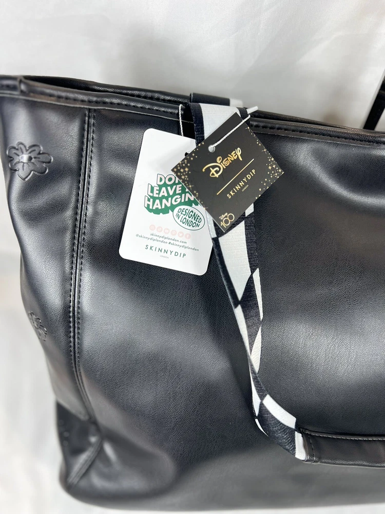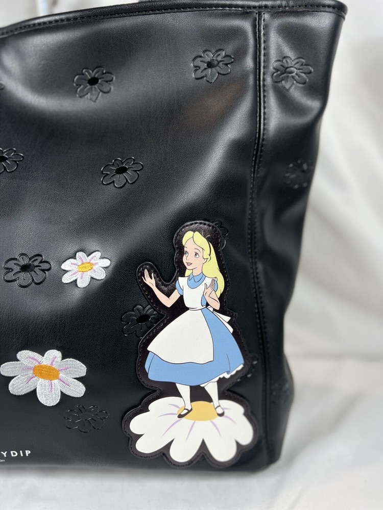 This Disney and Skinny Dip Alice in Wonderland Large Tote is a must-have for any Disney fan! The tote features an imprinted flowers pattern and is made of imitation leather with a multicolor handle/strap. It is perfect for travel, party/cocktail, or casual occasions. The tote has a snap closure and is lined with inner pockets for convenience. The bag charm adds a touch of personality to the tote. This rare tote is brand new with tags and is part of the Skinnydip London product line. It is perfect for any woman who loves Disney and Alice in Wonderland. Get yours today and add a touch of magic to your wardrobe!
