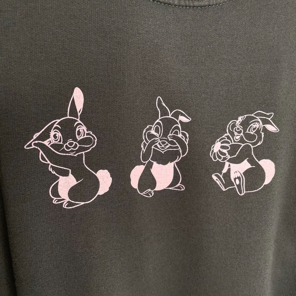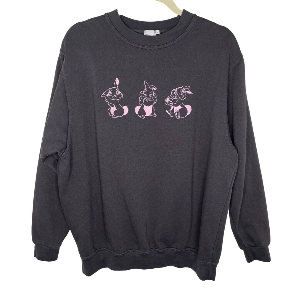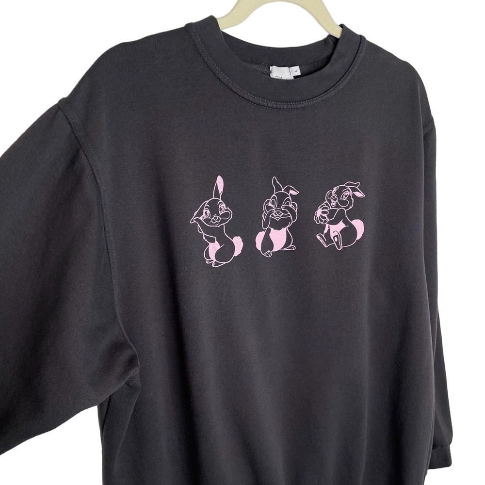 Disney + Skinny Dip Thumper Graphic Sweatshirt, L Care tag missing, assume cotton blend Charcoal grey with pink thumper graphics Excellent used condition - Armpit to armpit: 25" - Shoulder to hem: 27.5" - Sleeve length: 23" All measurements taken while flat and are approximate From a smoke free home I am a next business day shipper! Offers welcome!