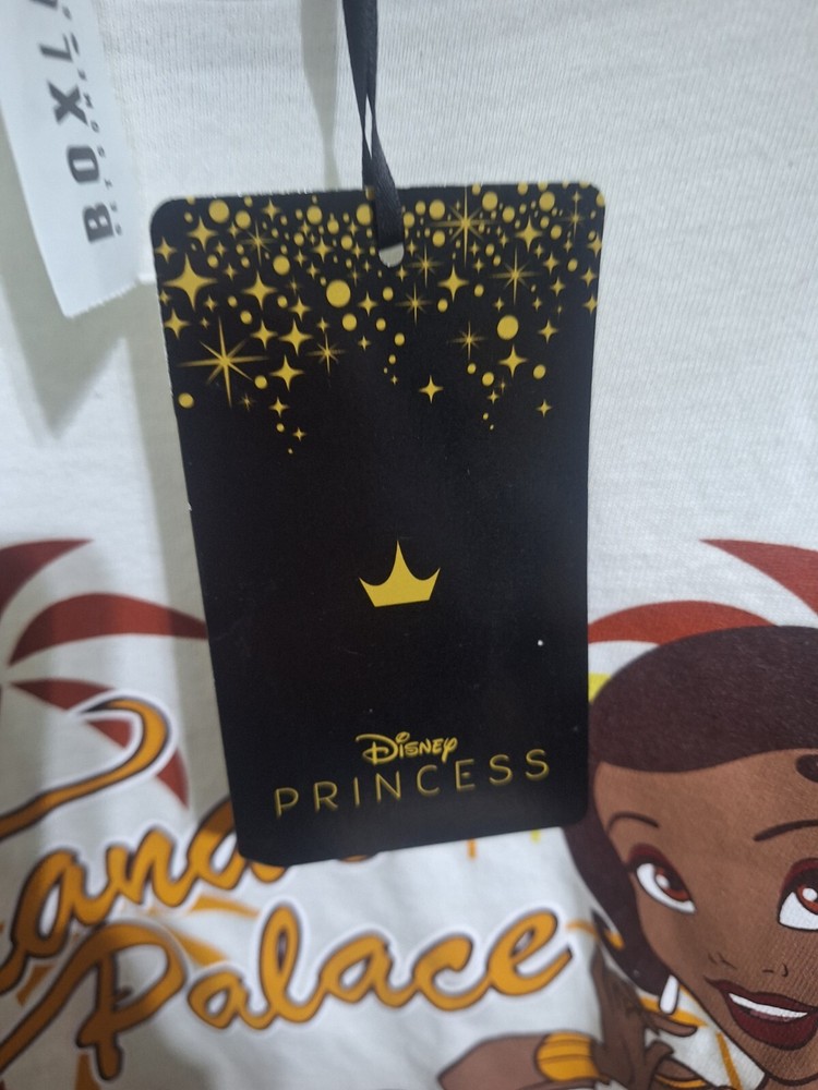 Step into the magic of Disney with this long sleeve top featuring Tiana's Palace from the beloved film The Princess and the Frog. The colorful design is perfect for any fan of the movie and the character. The top is made for women in a regular size large, with a comfortable fit that will make you feel like royalty. The brand is Disney and the theme is Princess, making it a great addition to any collection of clothing for women. The top is perfect for casual wear or for dressing up for a special occasion. The long sleeve design is perfect for keeping you warm and cozy, while the multicolor palette will make you stand out in any crowd.