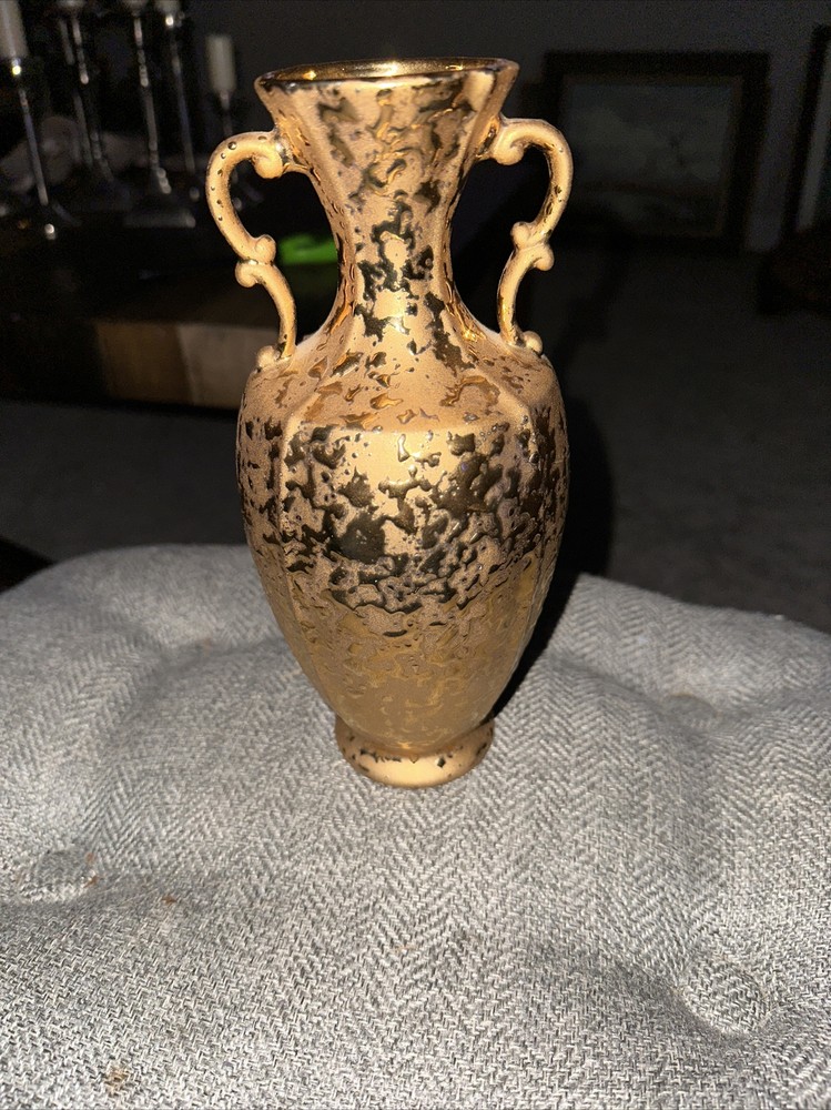 Dison Art Studio Urn Shaped Vase Handles Weeping Gold 22K 6.5" Tall....