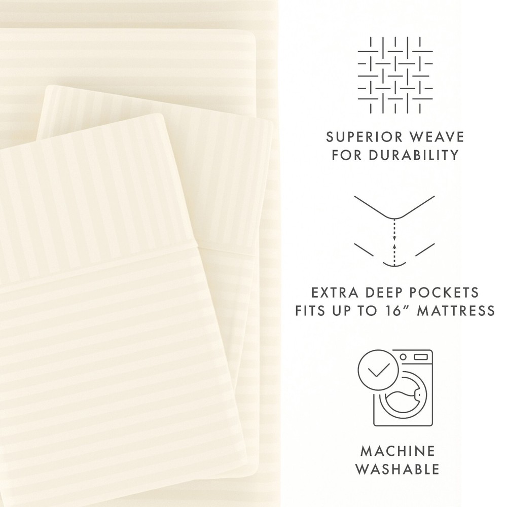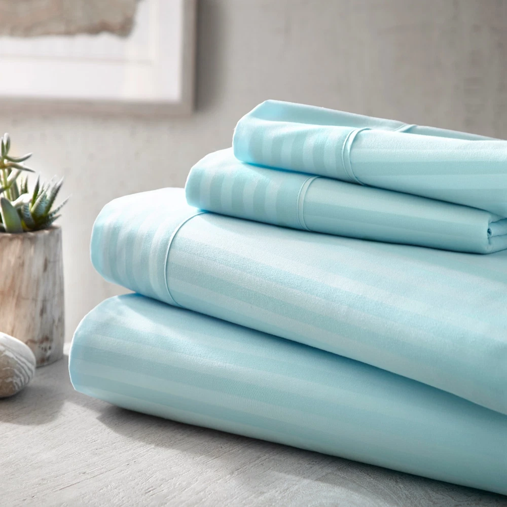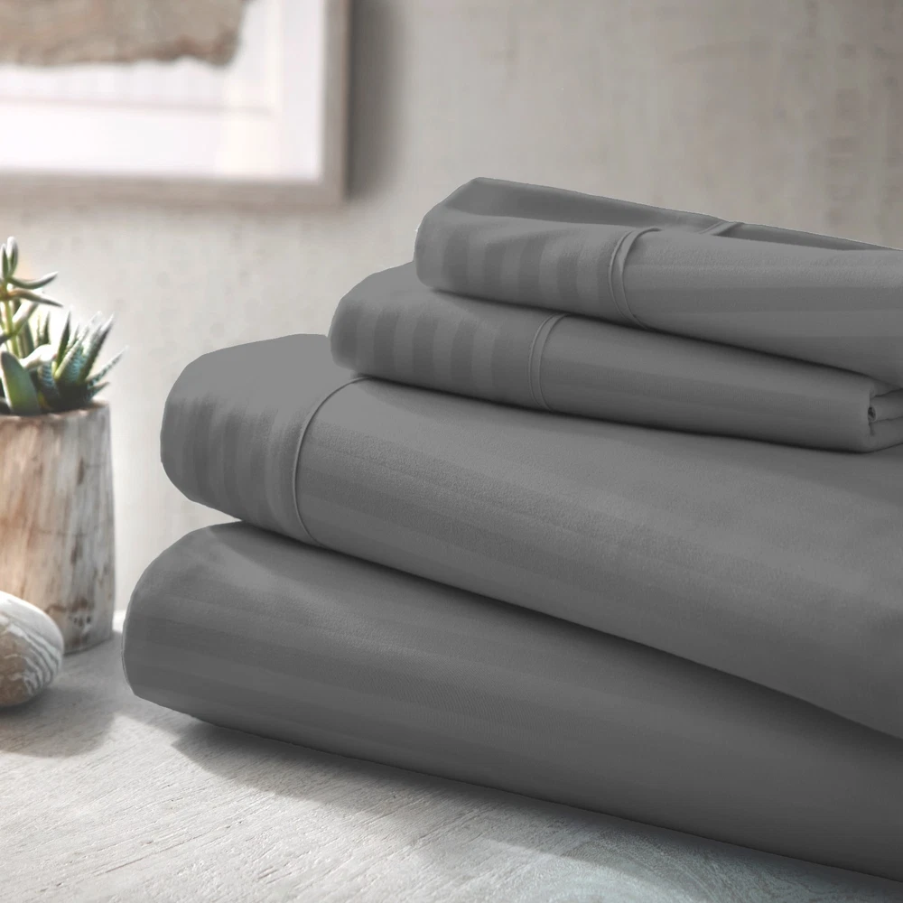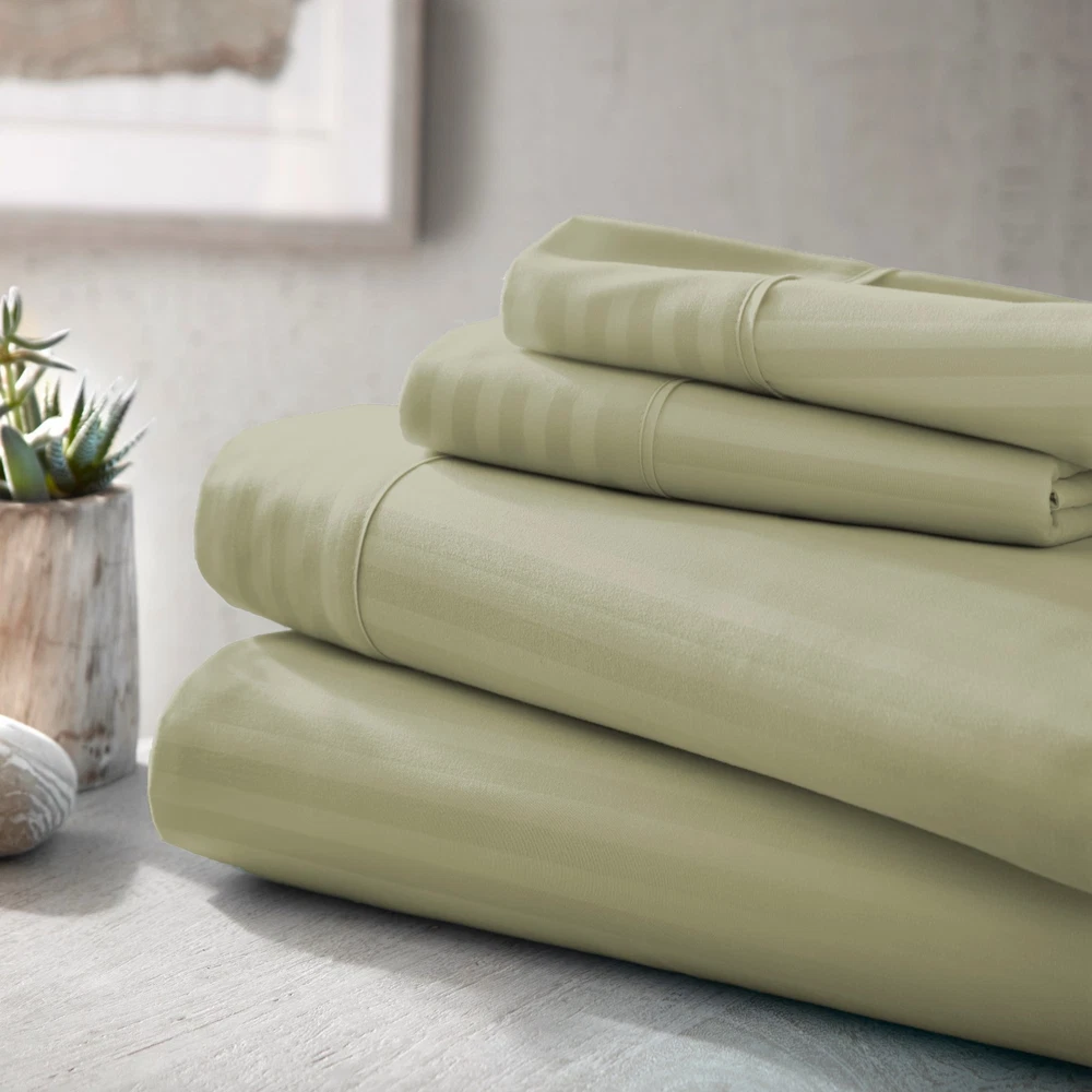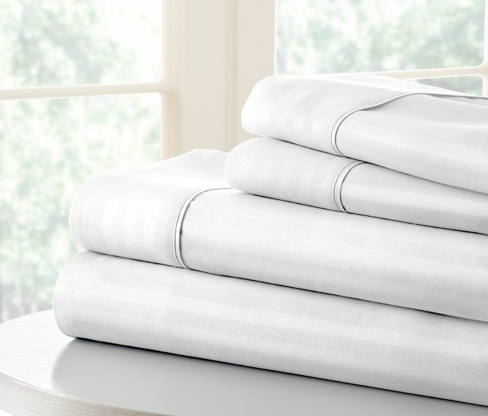 Dobby Stripe Bed Sheet Set Sleep is essential to your life, and it’s time to get a bedding that’s just as important. Our bedding is so soft, you won’t want to get out of bed. And with our durable microfiber, you won't have to worry about your comforter wearing out in 5 years or less. Soft as a cloud, and surprisingly durable, our bedding set is the perfect way to make your bedroom look like a five-star hotel. With top-of-the-line quality materials, it is easy to see that these bed sets are so much more than just an investment. Features Experience the same softness and durability that 5 Star Hotels have used for years! The SoSoft Collection 6-piece bed sheet set is designed with your comfort in mind. Made of the finest imported double-brushed microfiber yarns creating a new standard in softness and breathability, this 4-piece sheet set will make it incredibly hard to get out of bed in the morning. Our premium yarns are two times more durable than cotton, completely wrinkle free and perfect for all seasons. Material: Made with Ultra-Soft Double Brushed Microfiber fabric for outstanding comfort. Superior weave for durability and buttery soft touch. Hypoallergenic and resistant to dust mites. Easy Care: Machine wash cold, Tumble dry low, Fade Resistant, Wrinkle Free, No Ironing Necessary. Package Includes: 4 piece set includes 1 Flat Sheet, 1 Fitted Sheet, and 4 Pillowcases (Twin and TwinXL sets come with 1 Pillowcase) . What is included / Dimensions 1 Twin Fitted Sheet: 39’’W x 75’’ L +16 1 Twin Flat Sheet: 66’’W x 96’’L 1 Standard Pillowcase: 20’’W x 30’’ L 1 Full Fitted Sheet: 54" W x 75" L + 16" 1 Full Flat Sheet: 81" W x 96" L 2 Standard Pillowcases: 20’’W x 30’’ L 1 Queen Fitted Sheet: 60" W x 80" L + 16" 1 Queen Flat Sheet: 90" W x 102" L 2 Standard Pillowcases: 20’’W x 30’’ L 1 King Fitted Sheet: 78" W x 80" L + 16" 1 King Flat Sheet: 102" W x 108" L 2 King Pillowcases: 20’’W x 40’’ L 1 Calking Fitted Sheet: 72" W x 84" L + 16" 1 Calking Flat Sheet: 105" W x 102" L 2 King Pillowcase: 20’’W x 40’’ L Contact us We can be contacted at any time through eBay messages if you have any questions, comments or product requests. We will respond to you within 24 hours and do our best to help you out! We encourage our customers to contact us with any questions or concerns! We'd like to be sure you are completely satisfied with your purchase. Returns ienjoy Home offers a 30-day money-back guarantee on all items. Free return shipping. If you need to return an item for a refund, please contact us within the return period. All ienjoy Home sales include our 30-day money-back guarantee. Items may have additional warranty coverage. To determine if your purchase is covered by our manufacturer warranty, please contact us for further assistance. Shipping All orders ship within 1 business day. Standard shipping is FREE on all items shipped within the United States. For express and international shipping, please contact us for further assistance. (Unfortunately we do not ship to Alaska or Hawaii). Please keep in mind, if placed over the weekend your order will ship out the following business day. When your order ships, you will be emailed tracking information. International shipping is handled by eBay's Global Shipping program. For more information please contact eBay directly. Recomended Items from Kaycie Gray store Comforter Kaycie Gray Hotel Collection Luxury 8PC Comforter set $25.99 Luxury Sheets Rayon From Bamboo Luxury 4PC Soft Sheets Set by Kaycie Gray Hotel Collection $44.99 Solid Sheets Luxury 4PC Sheets Set Comfort by Kaycie Gray Hotel Collection $16.99 Comforter set Kaycie Gray Fashion Ultra Soft Desert Stripe 3PC Reversible Duvet Cover $17.99 Visit our store for more products Kaycie Gray by iEnjoy Home .