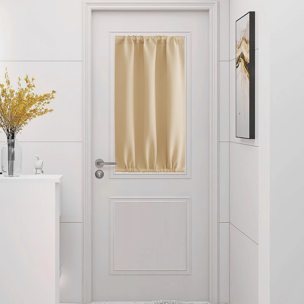 Door Curtains, Front Door Curtains for Kitchen Window Product Info.: The package comes with 1 panel door curtain and self adhesive sliding track kit. Each panel measuring 25 inches wide by 40 inches long. 2 rod pockets(diameter: 1" each)on both top and bottom sides give the curtain a nice fit. Balance Temperature: Protect your furniture and floor exposed to the sun, while still reducing summer heat, winter cold and outdoor sounds, keeping room temperature steady for a fresh home. Slef-adhesive curtain track: The curtain track is designed with strong adhesive tape for an easy and damage-free installation. Get your instant privacy without the need for drills and screws! Simply peel the paper backing and stick to a clean surface. Nice Function: These french door curtains are made of triple weave blackout material, which can block 85%-95% harmful lights and UV rays out. Perfect for kitchen, patio door, french door, sliding doors, glass doors and bathroom. Easy Care: blackout curtains are made to last. Machine washable in normal temperature water, use mild detergent, no bleaching, tumble or natural dry. Steam ironing can easily remove wrinkles or any fold marks.