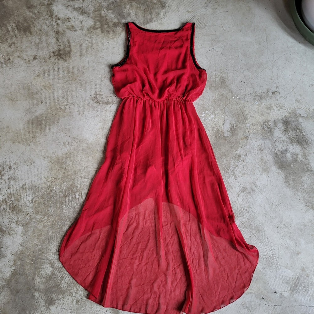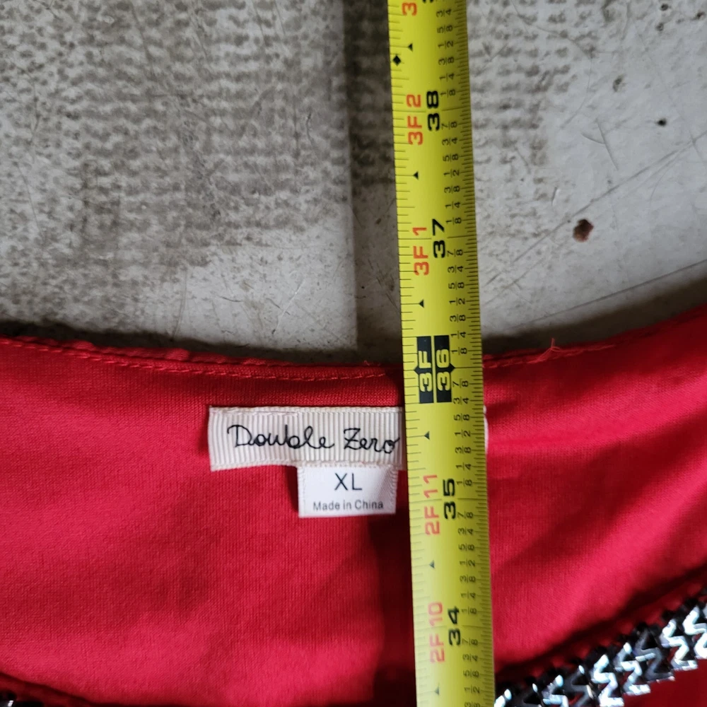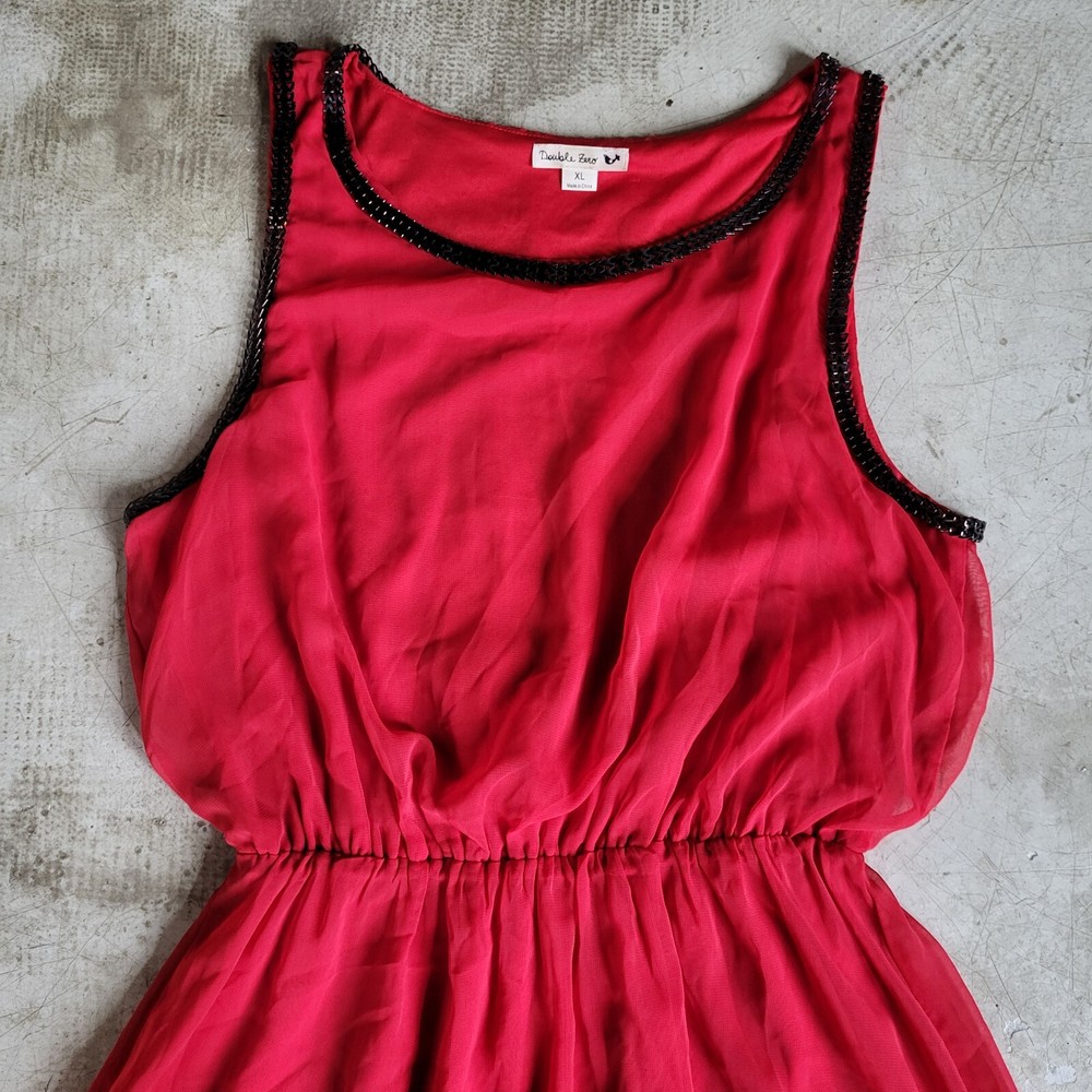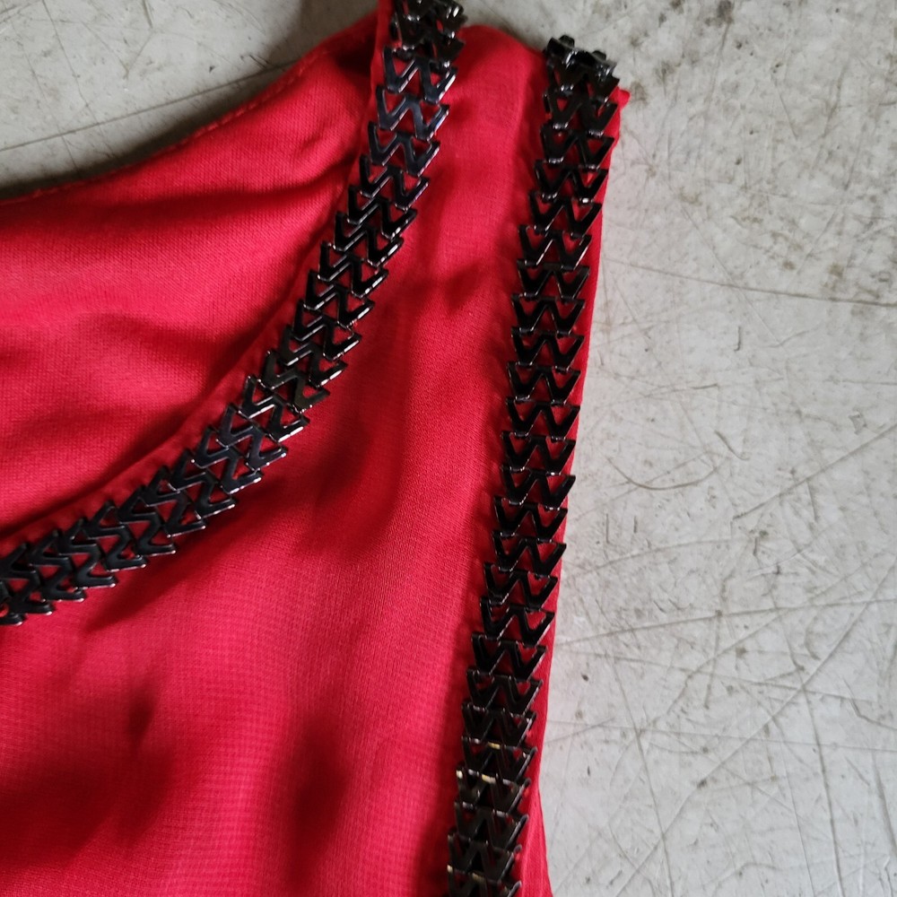 Double Zero Dip Hem Dress Red Chain Trim on Shoulders and Neck Line Size XL Chest Width: 20in Waist Width: 13in Front Length: 36in 30 Day Returns