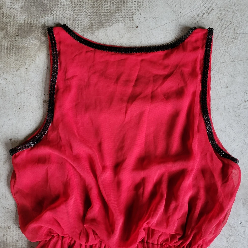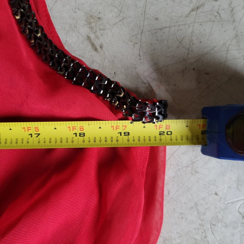 Double Zero Dip Hem Dress Red Chain Trim on Shoulders and Neck Line Size XL Chest Width: 20in Waist Width: 13in Front Length: 36in 30 Day Returns...