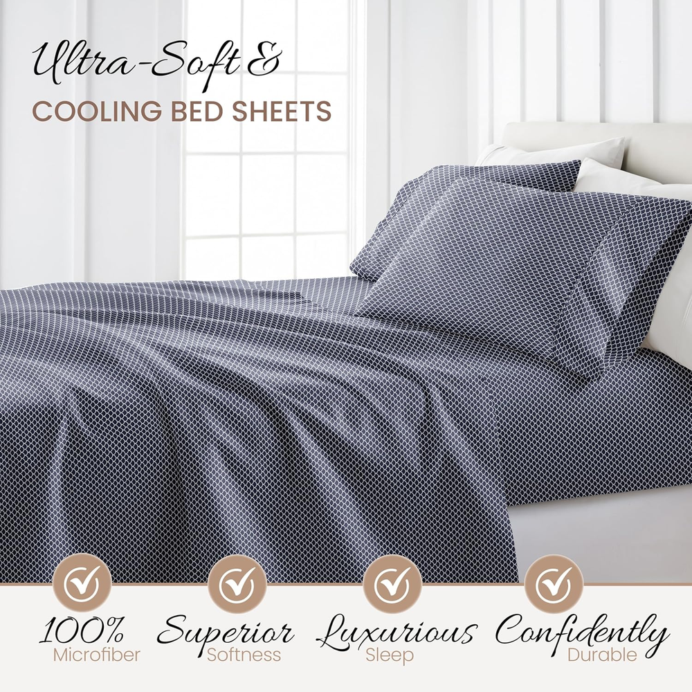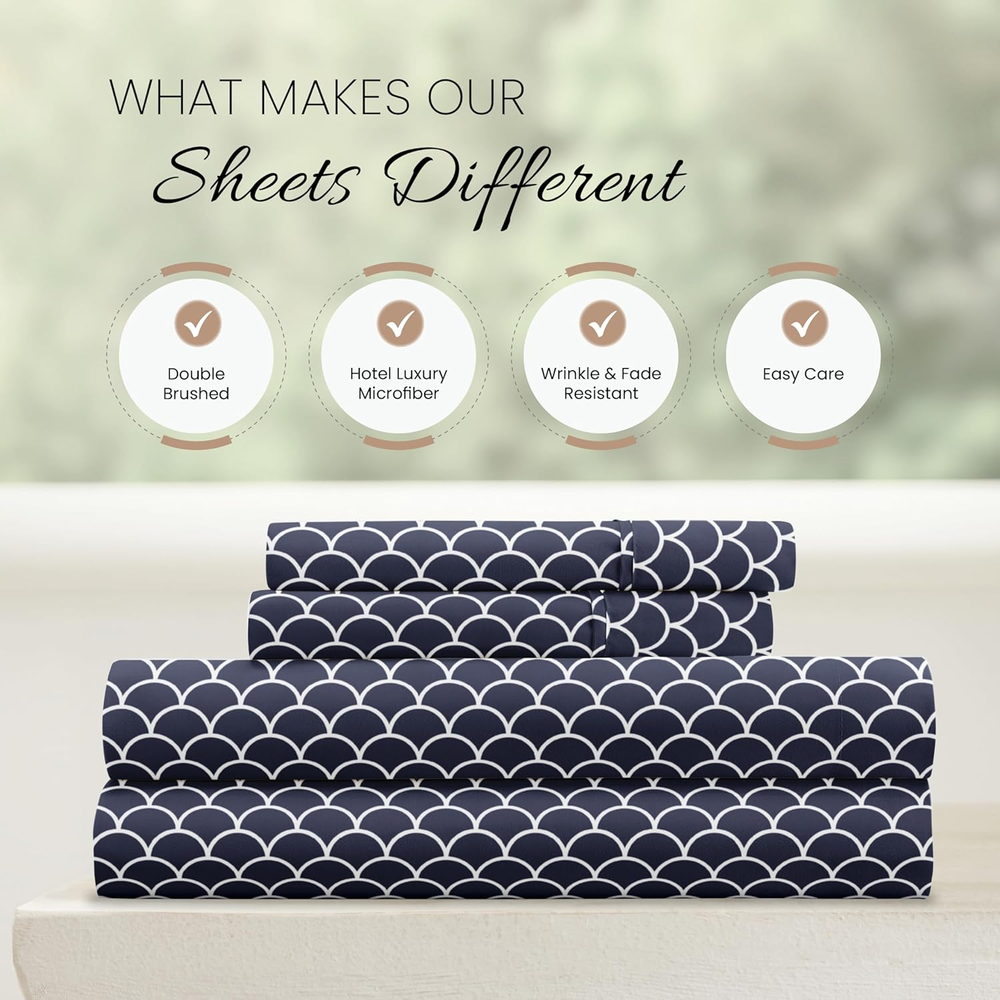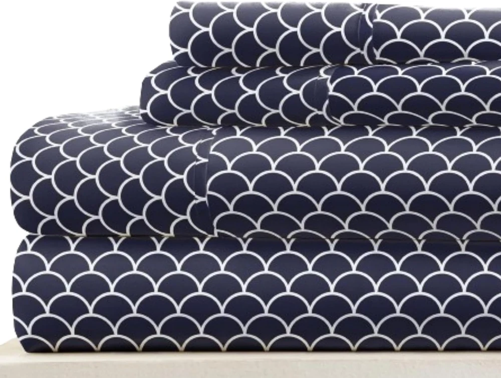 Menu Other Items Feedbacks About Us Contact Us Add To Favorites Double-Brushed Patterned Microfiber California King Sheet Set 4 Piece – Oeko-Tex Certified Ultra Soft & Wrinkle-Free - 16" Deep Pocket Sheets Easy Care Cal-King Size - Scallops Navy LUXURY AND COMFORT-You'll be amazed at how silky soft, and comfortable these luxurious bed sheets are! ienjoy Home luxury sheet sets are designer sheets at an unbelievable price. The perfect fit for any room in your house - bedroom, guest room, kids room, dorm room, RV, vacation home. Great gift idea for men and women, Moms and Dads, Valentine's - Mother's - Father's Day, Birthday, and Christmas. Made of the finest double-brushed Microfiber yarns creating a new standard in softness and breathability More durable than Cotton, completely wrinkle-free and perfect for all seasons TREMENDOUS SELECTION - Colors include Aqua, Black, Burgundy, Chocolate, Cream, Gold, Gray, Ivory, Light Gray, Navy, Purple, Sage, Taupe, and White. Patterns include Arrow, Blossoms, Burst of Vines, Coarse Paisley, Houndstooth, Honeycomb, Make A Wish, Mercedes, Polkadot, Puffed Chevron, Quatrefoil, Ribbon, Scallops, Soft Floral, Stippled, Thatch, Vines, and Wheatfield. BEAUTIFUL BED SHEETS: Our unique Scallops print is sure to add a touch of elegance and brighten up your bedroom. Check all 19 of our popular color options in all 5 size options to find the perfect match for every bedroom in your home. The Home Collection by I enjoy home is designed with your comfort in mind. Made of the finest double-brushed microfiber yarns creating a new standard in softness and breathability. Our premium yarns are two times more durable than cotton, completely wrinkle-free, and perfect for all seasons. Item Specification Item model number LM-4PC-1-1 Style Modern Pattern Patterned Theme Geometric Number of Pieces 4 Unit Count 1.0 Count Pillowcase Quantity 2 Product Dimensions 102 x 108 x 1 inches Material Microfiber Age Range (Description) Adult Seasons All Closure Type No Closure Item dimensions L x W x H 102 x 108 x 1 inches Item Weight 3.56 pounds Special Feature Wrinkle Resistant Color Scallops Navy Thread Count 20000 Global Trade Identification Number 00816651028146 Included Components 1 Flat Sheet, 1 Fitted Sheet, 2 Pillow Cases Product Care Instructions Machine Wash Size California King Dimensions Shipping Returns Additional Info Product Dimensions: 108.0 inches x 102.0 inches x 1.0 inches. Weight: 3.56 lb Fast shipping is very important for us. Our standard shipping service is FREE. Your order will be shipped within 1-3 business days upon full payment received. Most items are delivered within 3-5 business days, however, please allow 3-10 business days. We are shipping only to USA. We only ship to the confirmed Paypal address. We reserve the right to cancel any order for any reason at any time. We are not responsible for undeliverable addresses. We offer a 30 day return policy from checkout winning date. Your satisfaction is guaranteed! If for any reason you are unhappy with your item, just return it within 30 days for a full refund, minus shipping cost. Please contact us prior to initiating a return so that we can issue you a refund authorization. Items defective upon receipt must be packaged in their retail packaging as if new and returned with a detailed description of the problem. Return shipping fees are not refundable. We reserve the right to decline any returns if the above guidelines are not followed. All of our items, unless otherwise stated, will only run on 120 volts. Please check to make sure your country complies with these specifications. If you have a problem or question regarding your transaction please contact us before leaving any type of feedback. We will work with you to resolve any problem you may have.