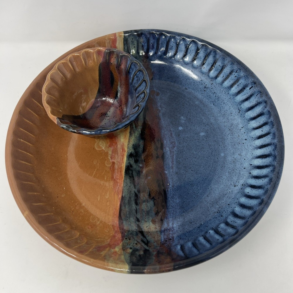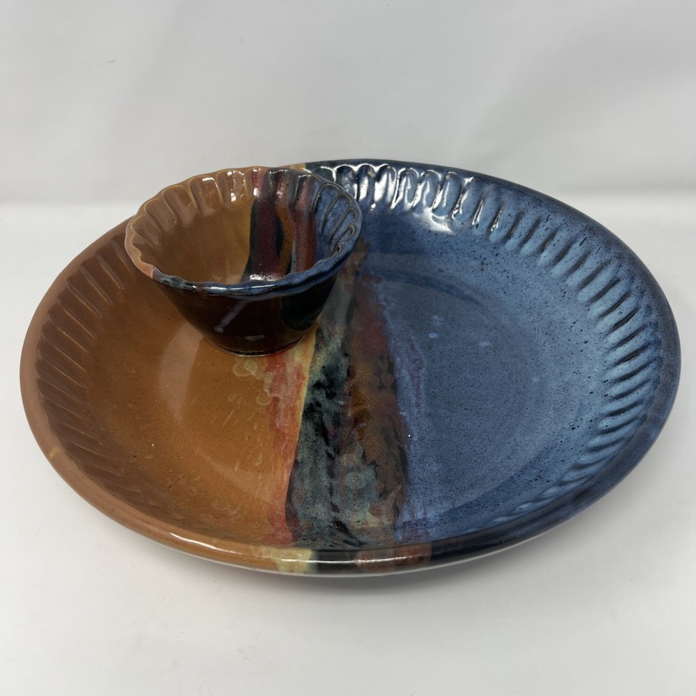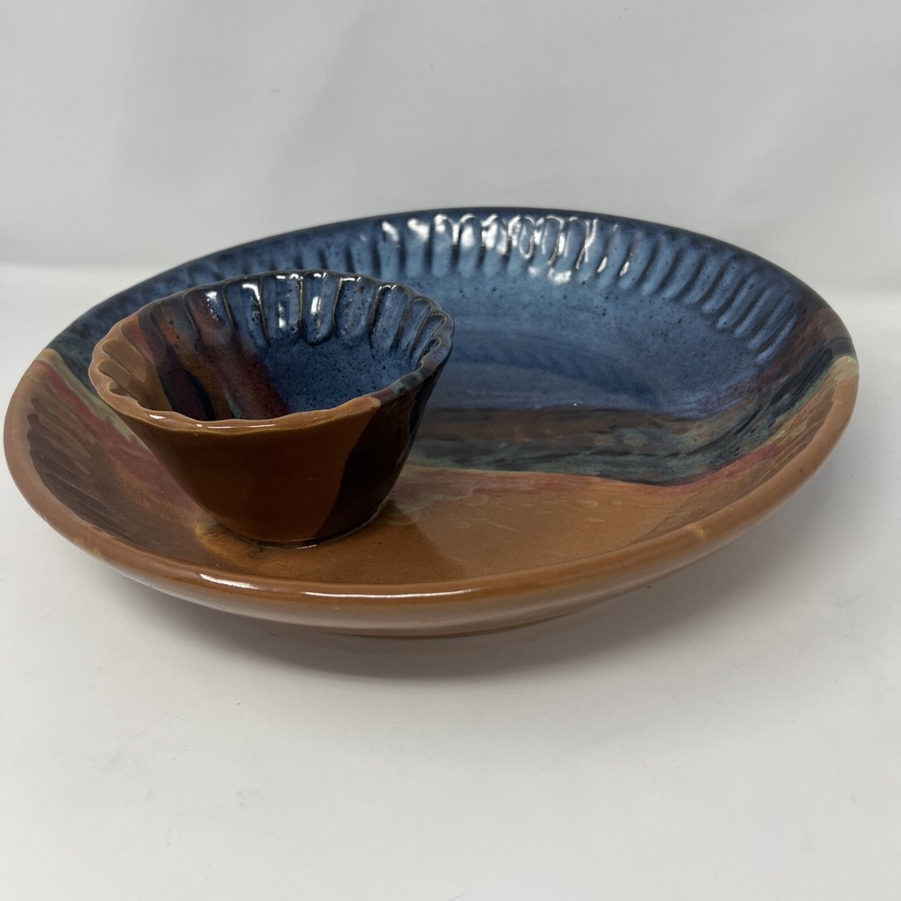This beautiful two-piece set from Always Azul Pottery is perfect for any occasion. The round tray and dipping bowls are made of high-quality stoneware and feature a unique swirl pattern in multicolor. The glossy finish and 4-inch height make them a great addition to any home decor. The set is handmade using the art pottery production style and features a drip glaze theme. The backstamp is printed and the manufacturer warranty is none. The set is oven safe and should be hand washed only. This late 20th-century masterpiece is perfect for housewarming, summer, all occasions, and other world celebrations.