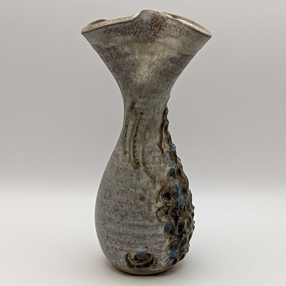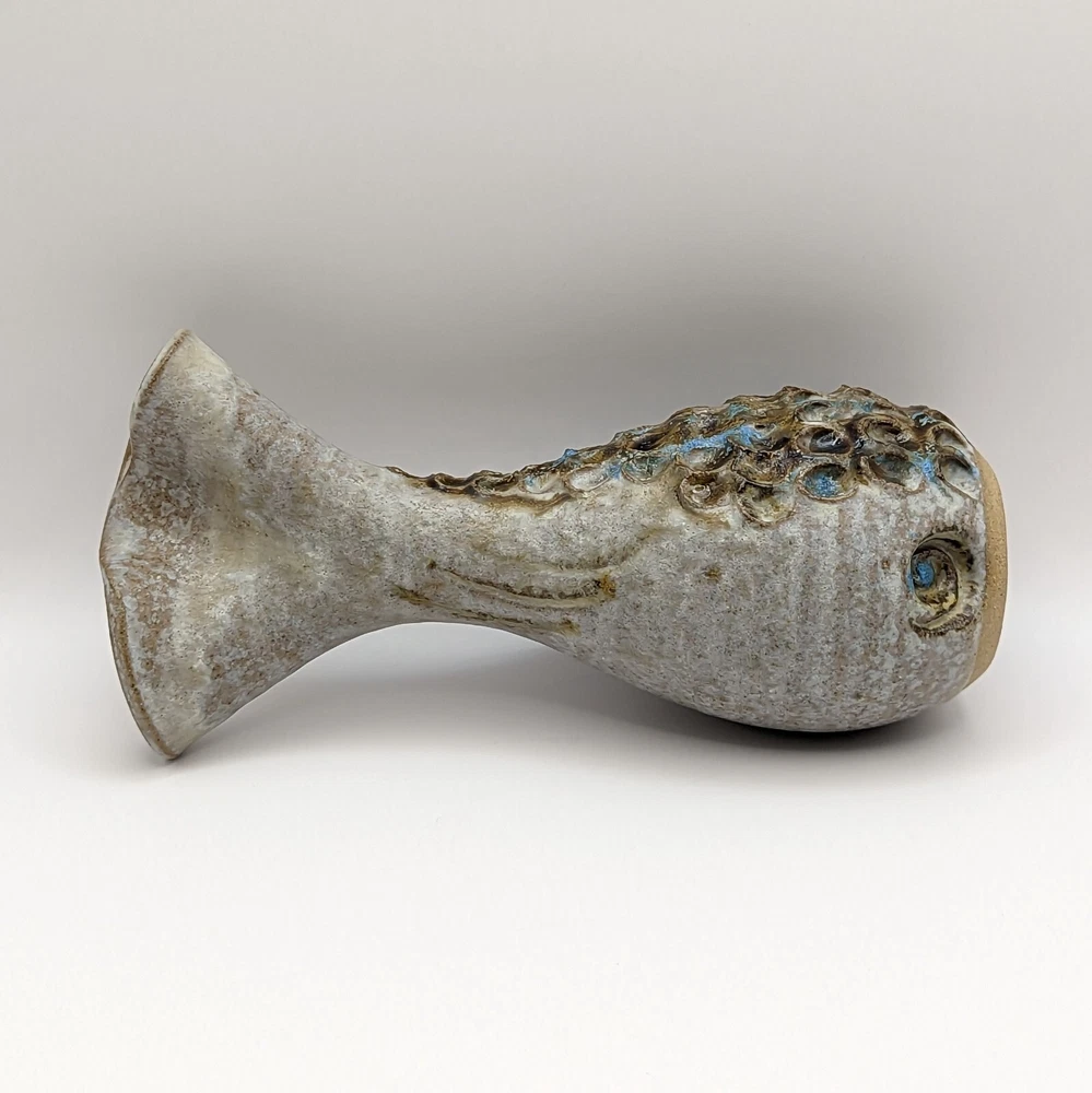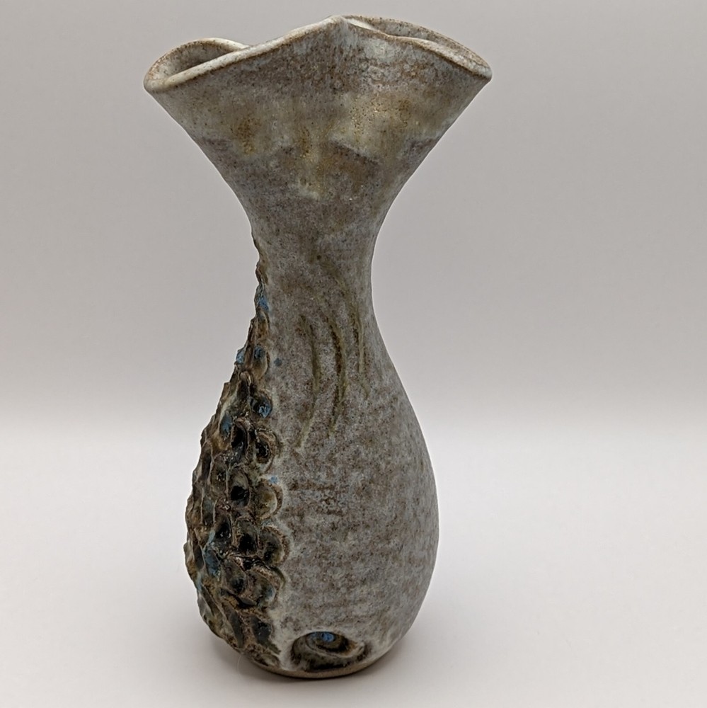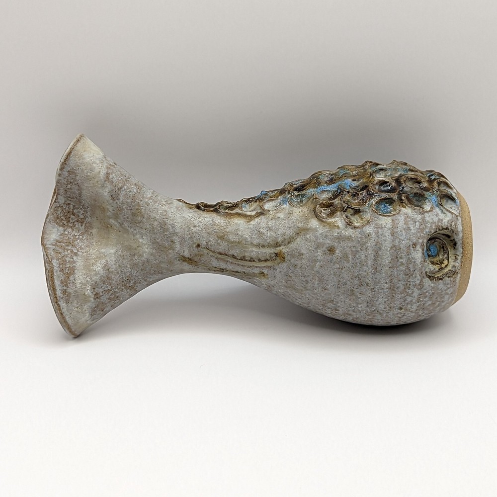 Dunquin Pottery is a small pottery studio located in the village of Dunquin on the Dingle Peninsula in County Kerry, Ireland. The pottery was established in 1975 by Louis Mulcahy, a master potter who had previously worked for the renowned Irish pottery company, Belleek. Dunquin Pottery specializes in creating handcrafted stoneware and porcelain pottery pieces that are known for their quality and unique designs. The studio's products include a wide range of items, including bowls, plates, mugs, vases, and more, all made with the same level of attention to detail and quality craftsmanship. Dunquin Pottery's designs are often inspired by the natural beauty of the surrounding landscape, and many of the pieces feature motifs and patterns that reflect traditional Irish culture and heritage. Condition: Like new, no damage noted. Dimensions: 6" height, 3" diameter top, 2.25" diameter body, approx.