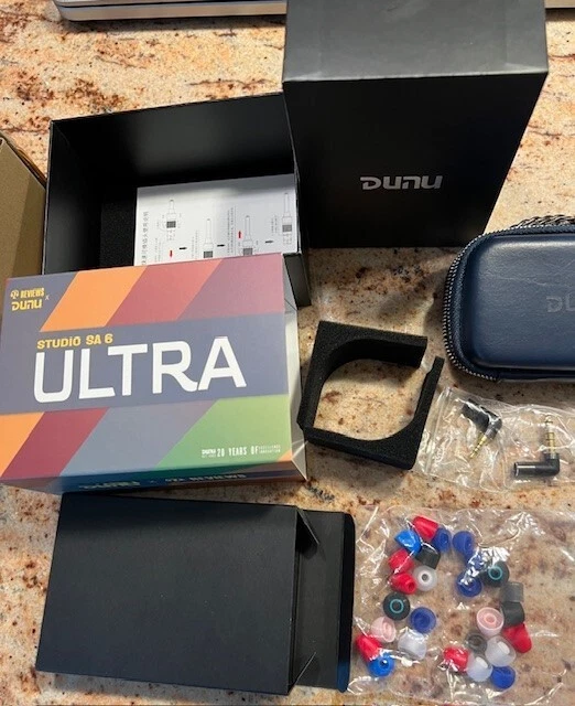 NO INTERNATIONAL SHIPPING.... DUNU STUDIO SA6 ULTRA. 300 Sets Made Total. this is( #Z112) Includes the HULK PRO JR. Cable. Zeo's Reviewer Teamed Up with DUNU and Created this Rare and Sought after set.. Many many reviews on this on this RARE Masterpiece. This is still the Outstanding TUNING that was done on the SA6 Series. I have ALL the Original Items that came with this Set. The Dunu Studio SA6 ULTRA is a rare in-ear monitor with a limited production of 300 units. It comes with a Hulk Pro Jr. cable accessory. These earbuds have a double earpiece design and are suitable for studio monitoring, DJ, and live monitoring. They feature a multicolor design, L-Shape Plug, and connectivity options including 4.4mm, 2.5mm Jack, and 3.5mm Jack.