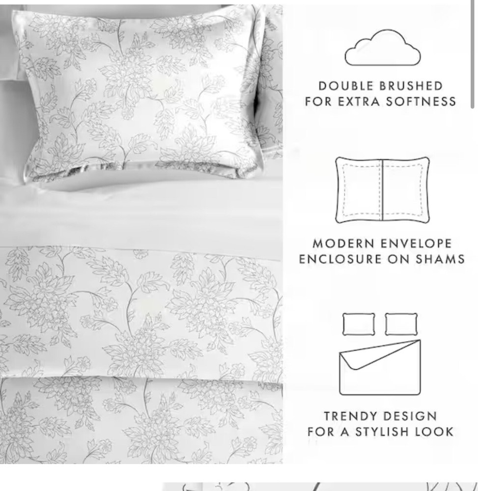 Duvet Cover King & Cal King 100% Microfiber patterned Vines White and grey. Condition is Pre-owned. Shipped with USPS Ground Advantage.