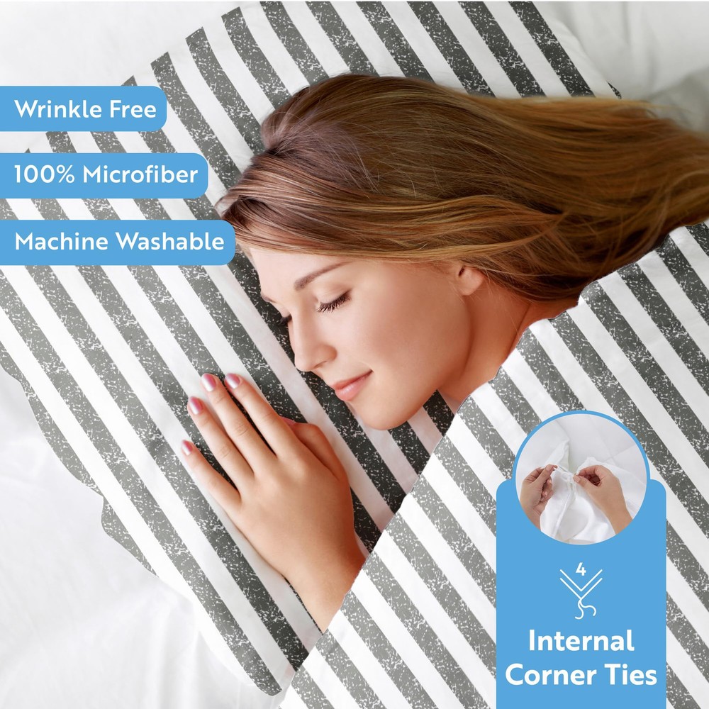 This duvet cover is incredibly soft and luxurious—it feels like sleeping in a high-end hotel! The microfiber fabric is breathable yet cozy, perfect for year-round comfort. The quality is outstanding, and it stays cool in summer and warm in winter. The neutral gray color fits any bedroom style, and the material is durable yet gentle on the skin. Washing is easy, and it comes out looking fresh every time. Definitely worth upgrading your bedding for this level of comfort!