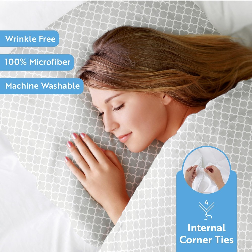 This collection is designed with your comfort in mind. Made of the finest double-brushed microfiber yarns creating a new standard in softness and breathability. Our premium yarns are times more durable than cotton, completely -free, and perfect for all seasons. LUXURIATE IN UNMATCHED COMFORT: Elevate your sleep experience with our exquisitely soft and cozy duvet cover queen. Crafted from premium microfiber, it envelops you in a cocoon of comfort, ensuring a blissful night's rest. TRANSFORM YOUR BEDROOM WITH STUNNING STYLE: Be your own inner interior designer with our wide array of captivating prints and elegant solid colors. From vibrant florals and farmhouse styles to geometric patterns, our duvet covers effortlessly breathe life and sophistication into any bedroom. UNCOMPROMISING QUALITY AND DURABILITY: Our duvet cover set is meticulously crafted to ensure long-lasting performance. With fade, stain, and shrink resistance, it retains its impeccable appearance wash after wash, offering you the perfect blend of luxury and durability. EFFORTLESS MAINTENANCE FOR BUSY LIFESTYLES: We understand the demands of modern life, which is why our duvet cover set is designed for convenience. Machine washable in cold water and quick-drying on tumble dry low, it saves you valuable time and effort, allowing you to spend more moments enjoying the comfort and beauty it brings to your sleep sanctuary. THOUGHTFUL DESIGN FOR CONVENIENCE: Our duvet cover set includes corner ties to secure your comforter in place, preventing it from shifting or bunching up inside.