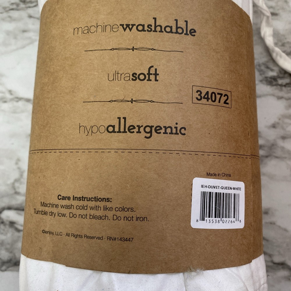 Elevate the look of your bedroom with this ultra-soft duvet cover set from ienjoy Home. The solid white color and traditional style will complement any decor, while the full/queen size ensures a perfect fit. This set includes a duvet cover and pillowcases, all made from microfiber material for a luxurious and cozy feel. Add a touch of elegance to your bedroom with this beautiful duvet cover set.