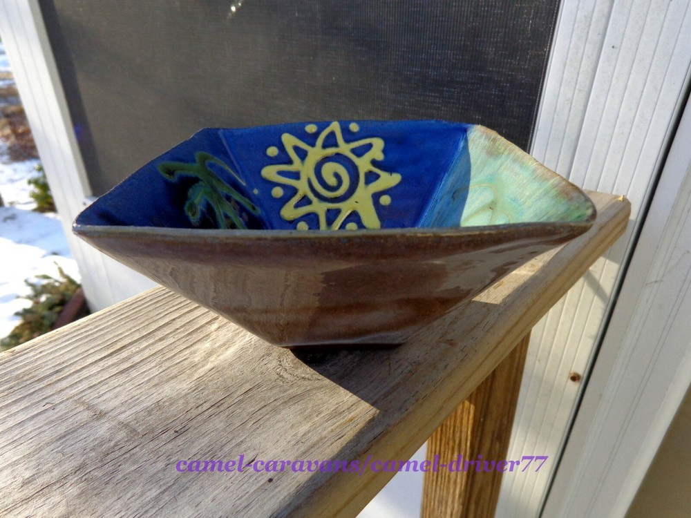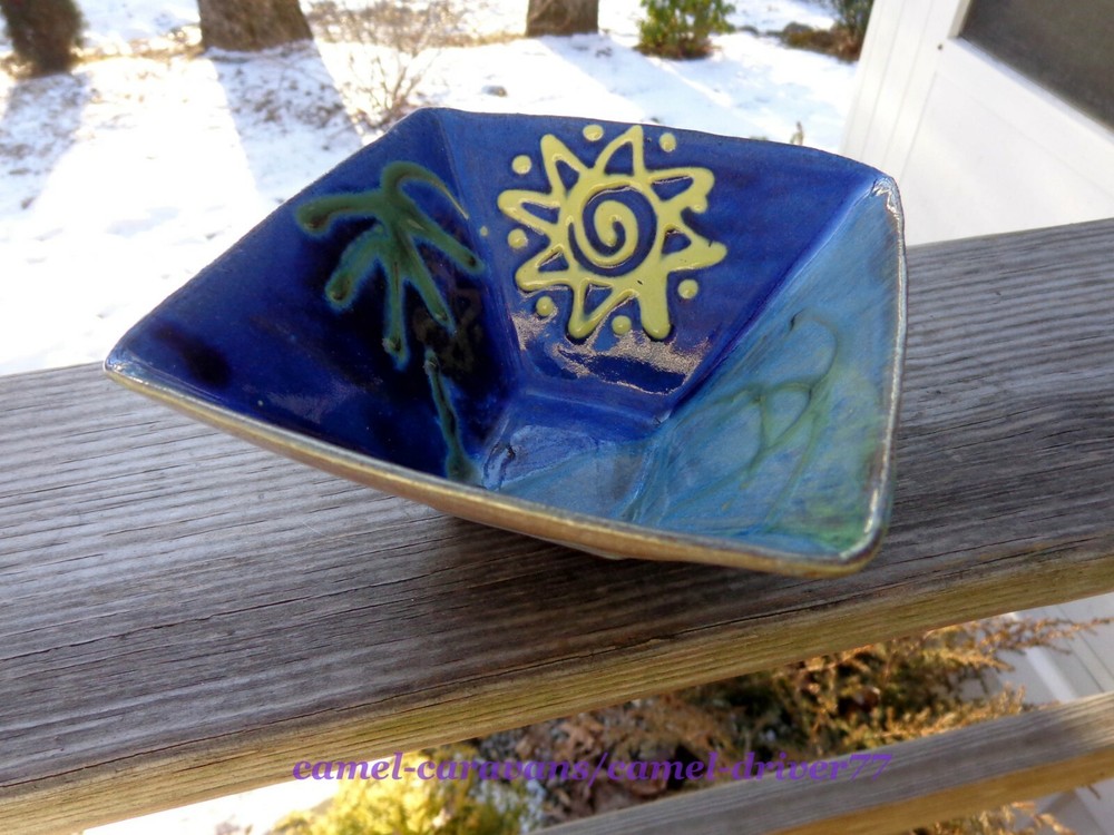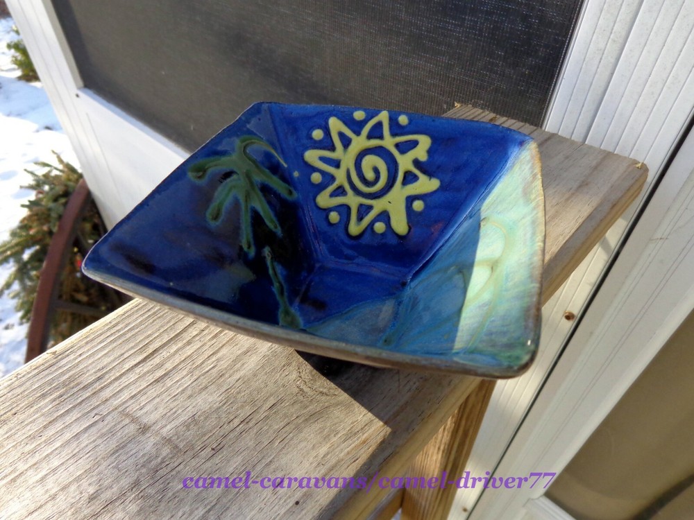 EARTHWORKS Barbados ART STUDIO POTTERY "Sunshine 2" 5.25" Square Bowl From the Artist's Website: Red clay ceramic pieces are fired to stoneware temperatures. Everything is hand-finished and hand-decorated with our underglaze colors. Our products are lead-free and food safe. Everything is dishwasher and microwave safe. Signed: Earthworks Barbados In excellent pre-owned condition! No chips or cracks. ***See pictures as part of description*** All items come from a smoke free and pet free home. Please email me with any questions as all sales are final. Payment is expected within 48 hours of auction close. Items will be shipped next business day of receiving payment. Thank you and happy bidding!