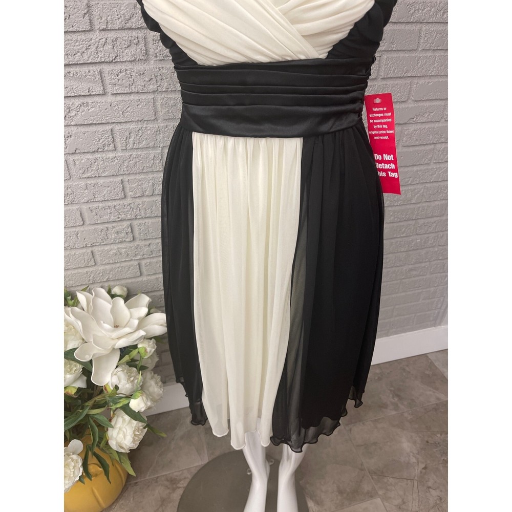 Beautiful dress in brand new condition! New With Tag Color block black and white Ruched detail on front Empire waist with tie Fully lined lightly padded in bra Great for wedding cocktail party Size:6 Features: • 1667CB30 Measurements: LENGTH 39 in / 99 cm PIT TO PIT 15 in / 38 cm Condition: New With Tags Brand new If your purchase isn't described accurately or isn't true to the measurements in the listing, I will happily refund your purchase price!