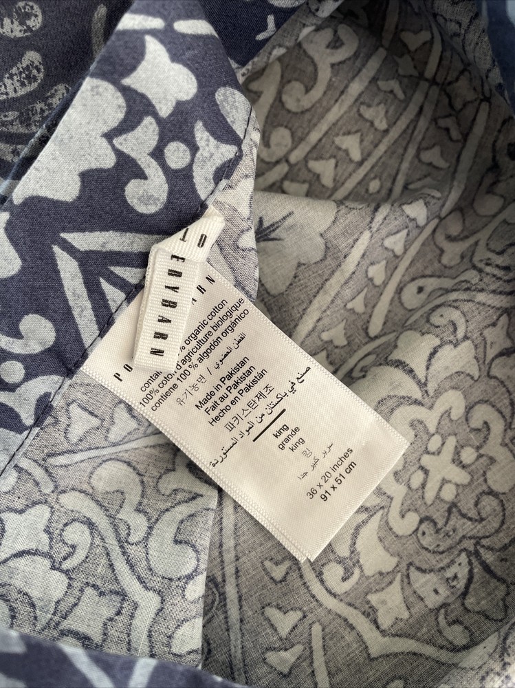 Like New; appears to not have been used at all-see pics Pottery Barn's Carins Print King Sham -Blue 24”x39” Total size: Approximately 24 x 39" including the 2" flange...