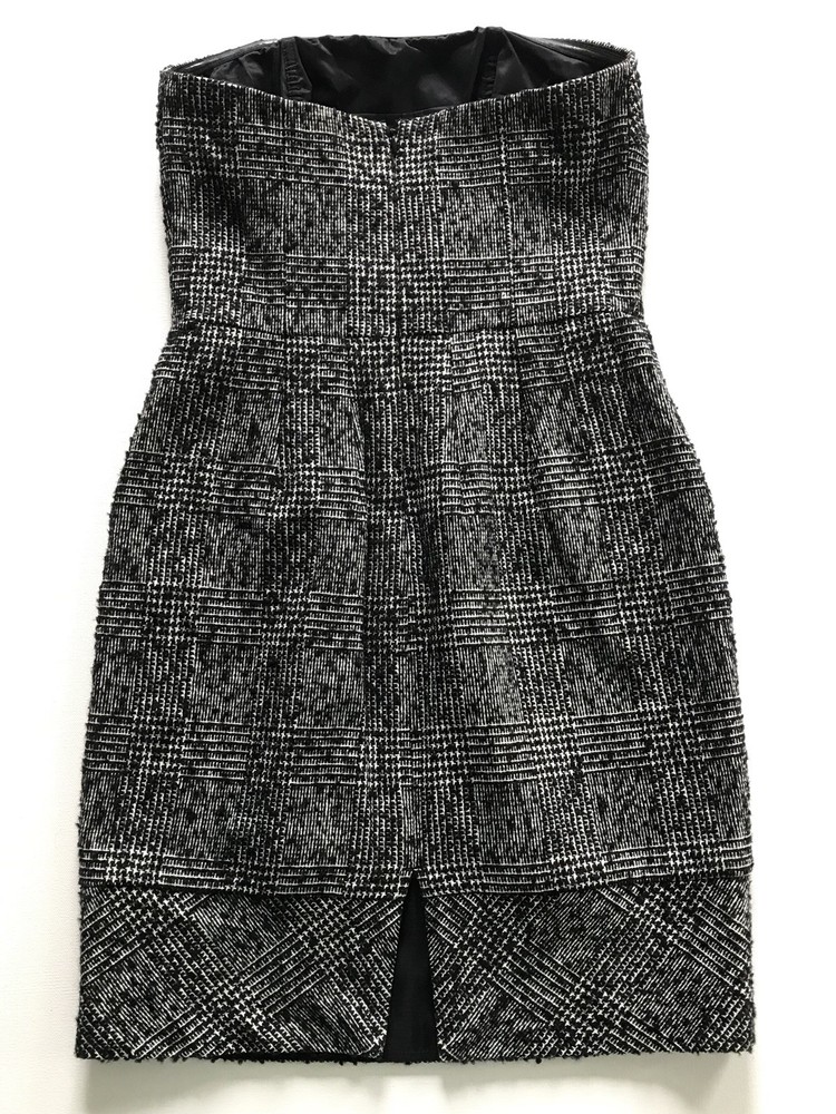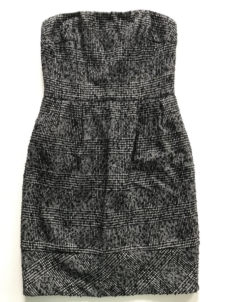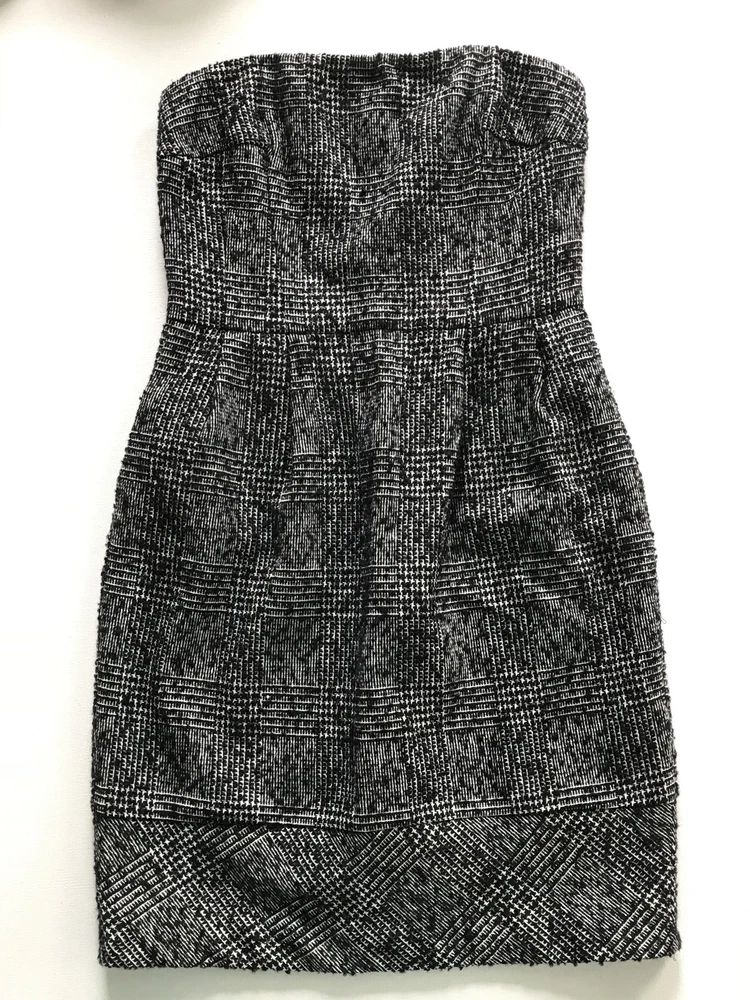 Lovely Black & White Plaid Wool Strapless Cocktail Dress from Express Design Studio Look chic and stylish this season in this sophisticated dress from Express Sweetheart neckline Boning in bust Rubber strip on inside to hold everything into place Fitted at waist POCKETS!!!! Straight skirt Small slit at back Fully lined Subtle patchwork placement to plaid fabric 37% acrylic,29% cotton, 17% wool, 13% polyester, 4% other Size 2 Measurements: 32" bust 26" waist 38" hips 28.5" from bust top to hem Thank you for supporting a small business on eBay!! *International Buyers – Please Note: Items can no longer be sent as a "gift" on customs forms, we apologize to our loyal international buyers. Import duties, taxes, and charges are not included in the item price or shipping cost. These charges are the buyer's responsibility. Please check with your country's customs office to determine what these additional costs will be prior to bidding or buying. Great Quality. Fast Shipping. Happy YOU!!!